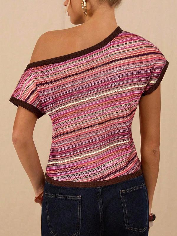 Casual Striped T-shirt & Textured Knit Loose Fit Top #Mayins #BaillinDress #stylishtops #texured #fashion