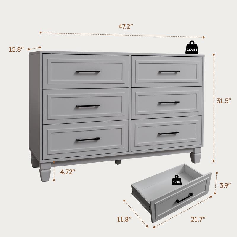 ·【Ample Storage】6 drawers and the spacious top provide enough space to organize your clothes, toys, changing pads and others. The large storage space meets all your storage needs and effectively keeps your room neat and organized.