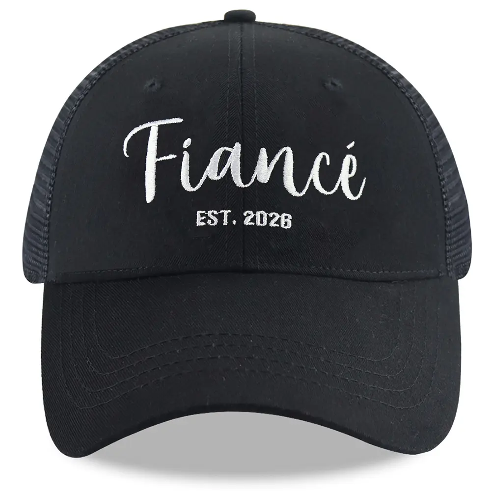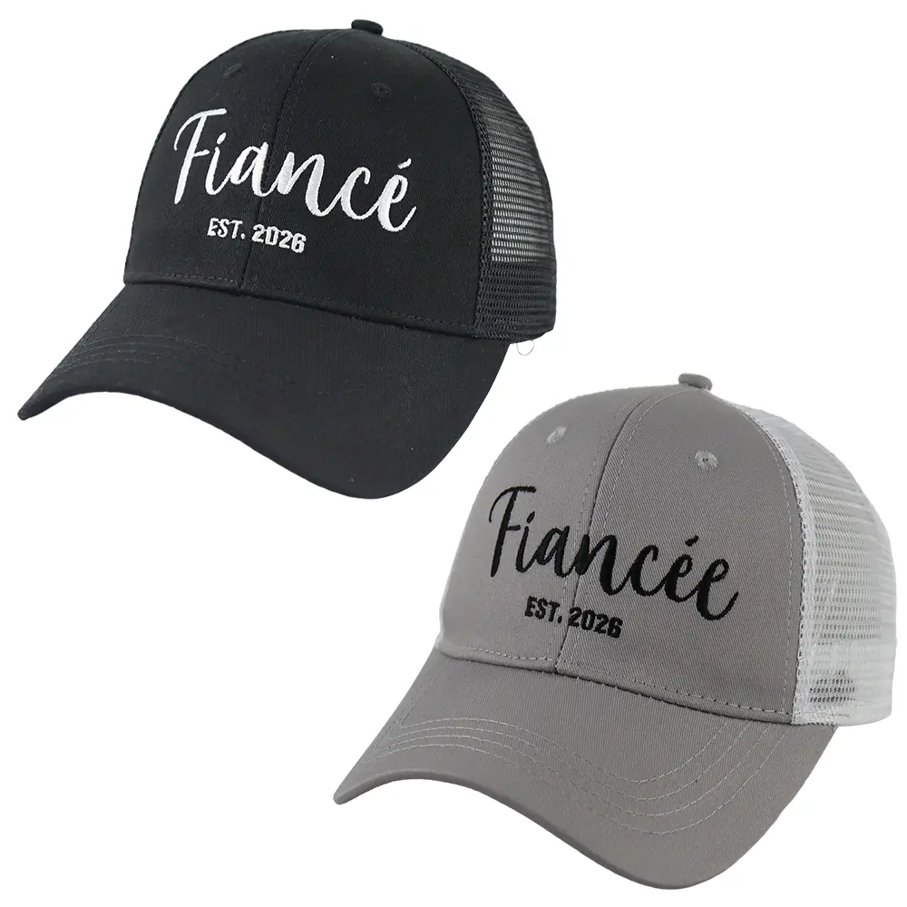 · Fiancé Fiancée est 2026 Hat Birthday Gifts for Men Women Newlywed Honeymoon Matching Cap Just Married Truker Hat Couple Bride Groom Husband Wife Wedding Established Mesh Snapback Baseball Caps Dad Mom Thanksgiving Christmas Mother’s Father’s Day