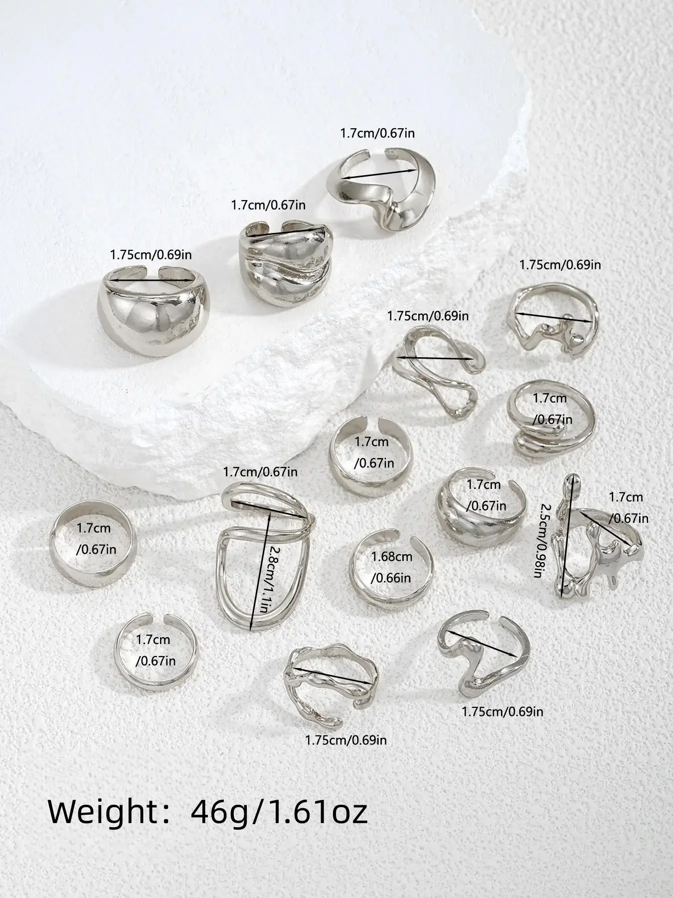 Women's Fashion Ring Set Silver Color Irregular Smooth Geometric Liquid Rings Exaggerated Old Money Style Stackable Wide Bands Dainty Stacking Rings