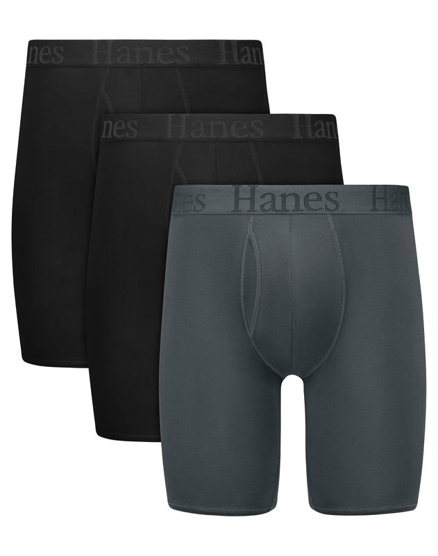 IT'S SOFT, IT'S COOLING, IT'S EVERYTHING Indescribably soft. So comfortable you'll forget you have it on. Hanes Originals Men's Long Leg Boxer Brief underwear is made from our softest fabric EVER - a luxurious viscose from bamboo fabric that is super lightweight, engineered to beat the heat, and includes spandex for a customized fit. But the softness doesn’t stop with the fabric: Smooth comfort seams and a Total Support Pouch® that separates and supports will help reduce chafing. All this plus an elevated, modern design that features a made-to-move waistband, a lower rise, and a close-to-body fit. Hanes Originals. Who says you can’t have style and comfort? (Not us.)