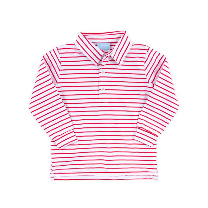 Red Stripe Long Sleeve Polo - Soft Knit Boys Shirt
