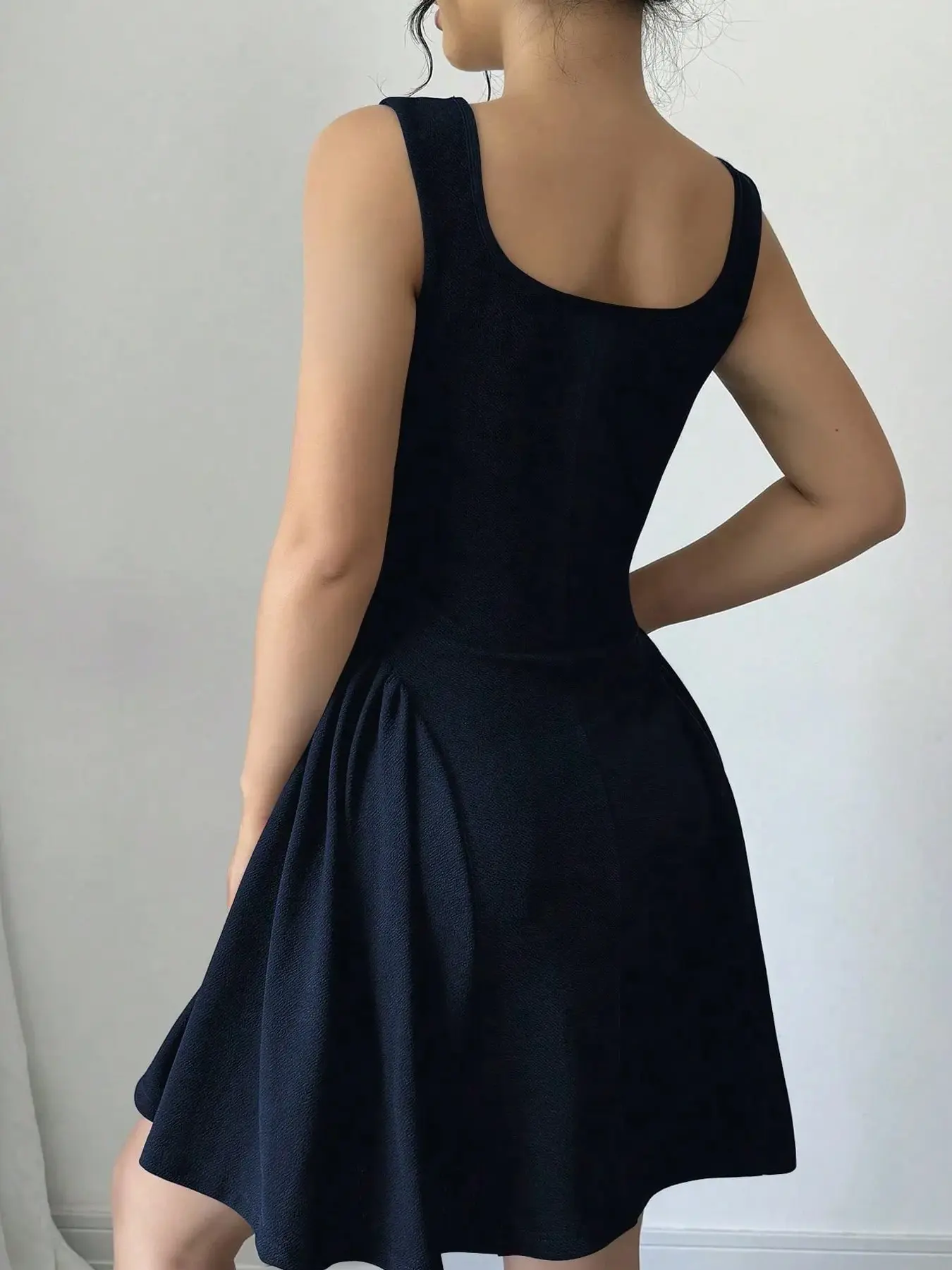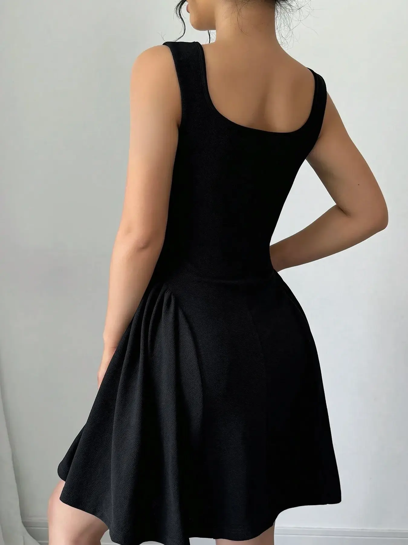 Women's Square Neck A-Line Dress, Slim-Fitting Ruffled Hem, Casual Wear for All Seasons, Perfect for Commuting and Daily Use