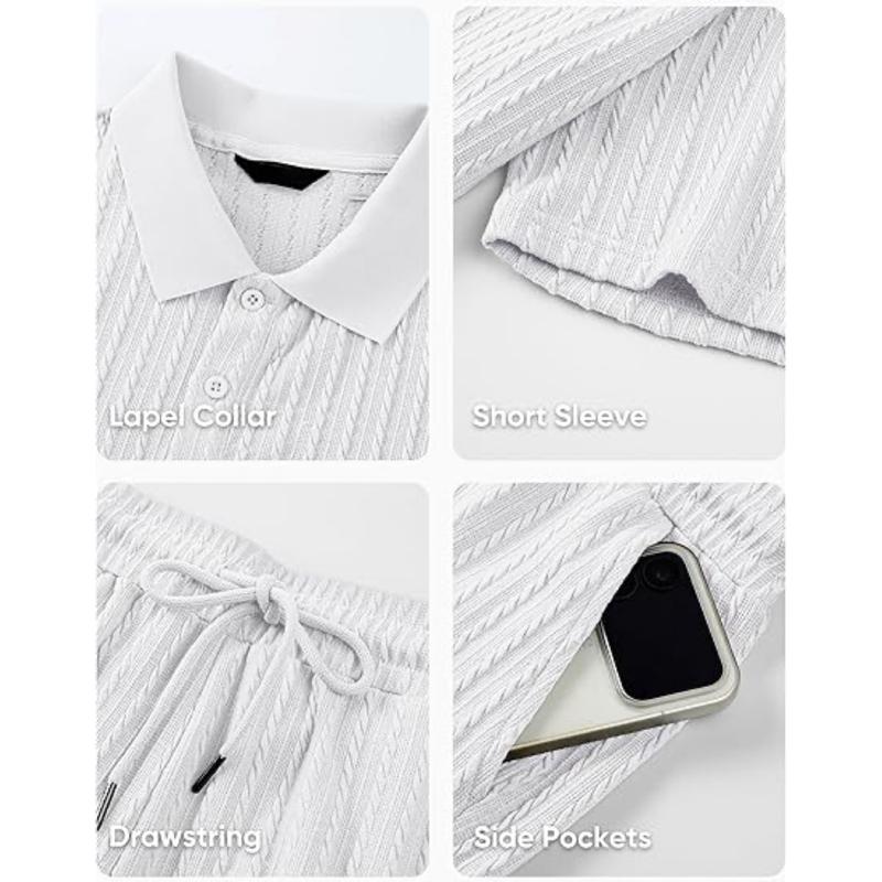 ·Premium Material - You really need a set of easy-to-match, multi-scene suitable comfortable sweatsuit sets in spring and summer. You can wear the set when going out or as pajamas at home. The men's jacquard knitted suit is made of high-quality 95% polyester + 5% spandex elastic knitted textured fabric, which is durable and soft and not easy to wrinkle.