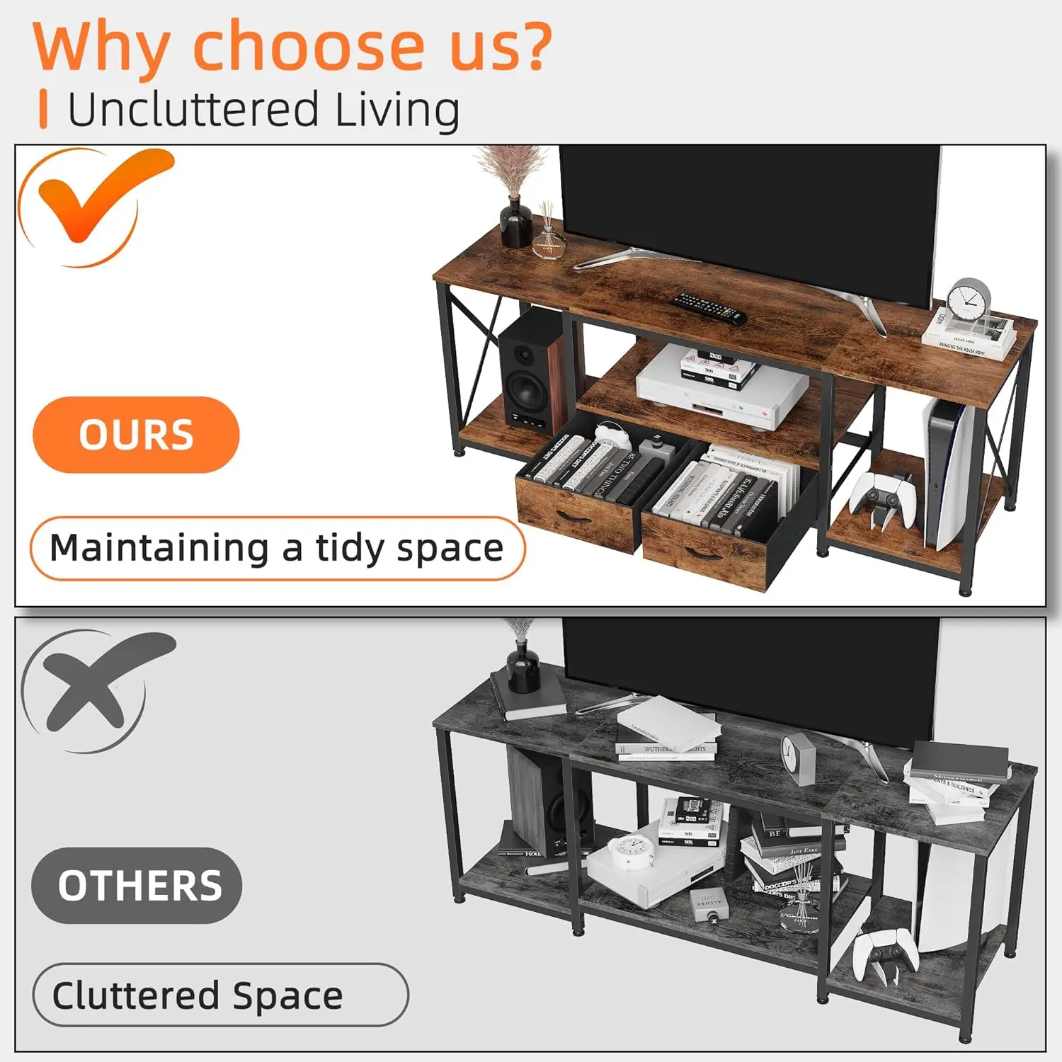 【Dedicated after- service】We take pride in our commitment to providing excellent customer support. Our team is ready to assist you promptly and effectively, ensuring your satisfaction with your purchase and providing peace of mind throughout your ownership of this TV stand.