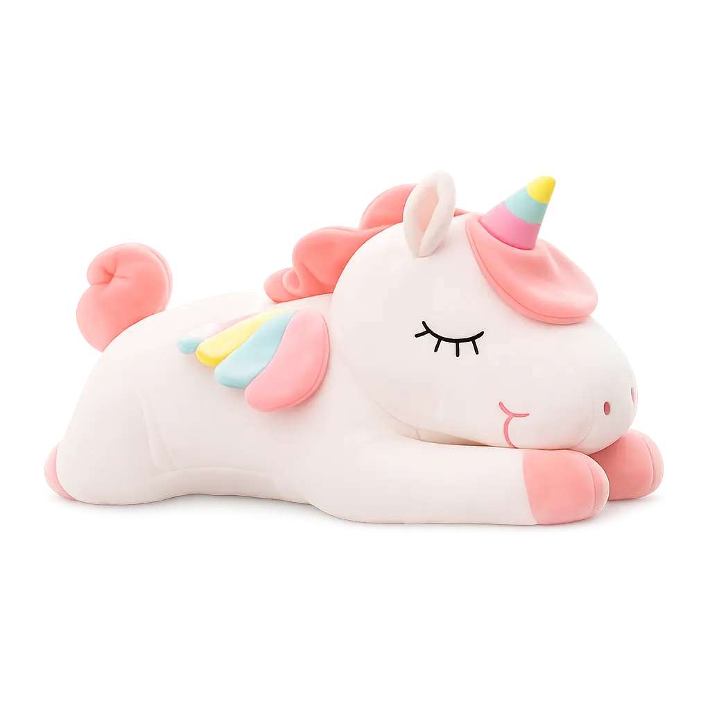 ·Adorable Unicorn Plush Pillow: This pillow features soft pastel colors, embroidered sleeping eyes, and colorful horn details. It has a rainbow mane, white pink coral, and ultra-soft plush material. Perfect for snuggling and hugging.