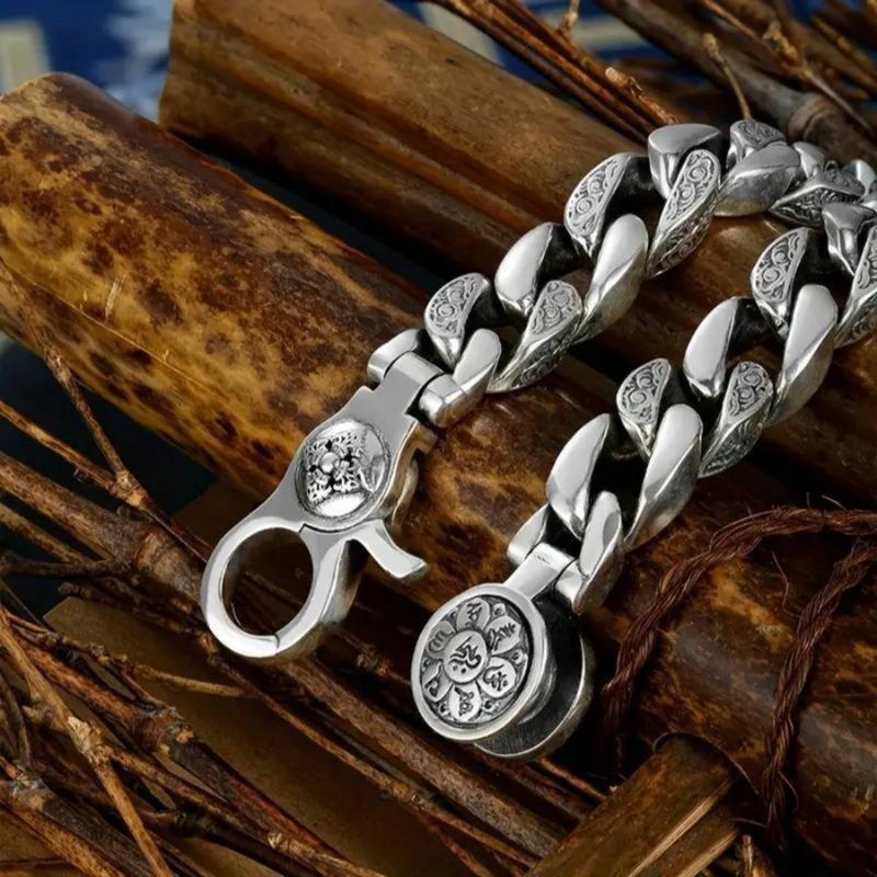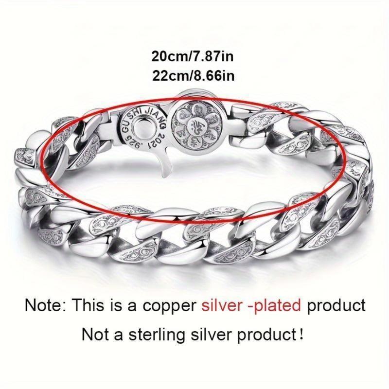 Elegant S925 Silver Plated Bracelet Unisex Neutral Style: This bracelet is designed for everyone, offering a timeless retro look. It features a rotatable design, making it versatile for any occasion. The neutral style complements various outfits, ensuring you always look chic and sophisticated. Peace and Good Luck Symbol: Carrying a meaningful message of peace and good luck, this bracelet adds a touch of positivity to your wrist. It's not just an accessory but a symbol of hope and prosperity, making it a cherished piece for those who appreciate deeper meanings in fashion. Domineering Cool Design: With its domineering cool design, this bracelet exudes a unique charm. Its bold appearance makes it stand out, ensuring you make a statement wherever you go. Embrace your style with this fashionable and distinctive piece.
