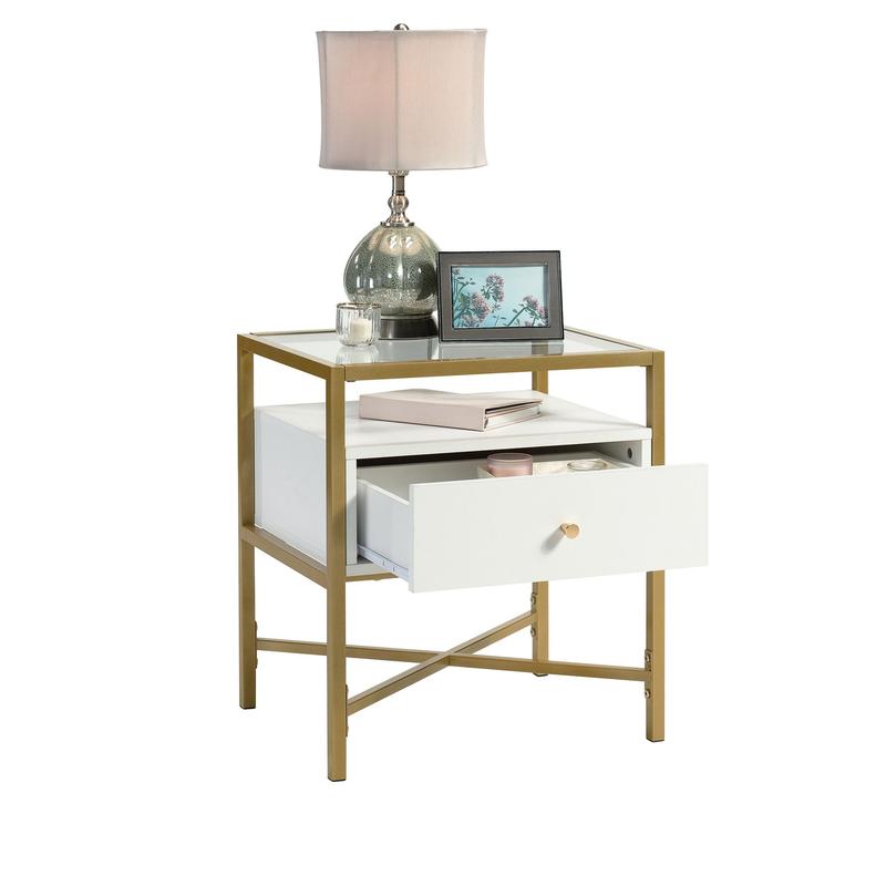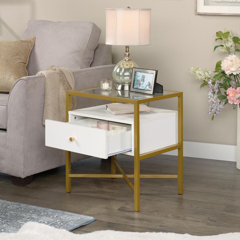 ✨ Transform your living room with the Sauder Harper Heights Side Table. This modern piece combines wood and metal, offering a charming aesthetic. The glass top provides ample space for a lamp, plants, and drinks. Safety-tempered glass ensures a luxurious touch. 🌟