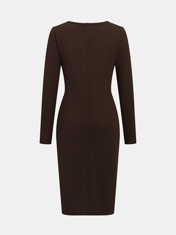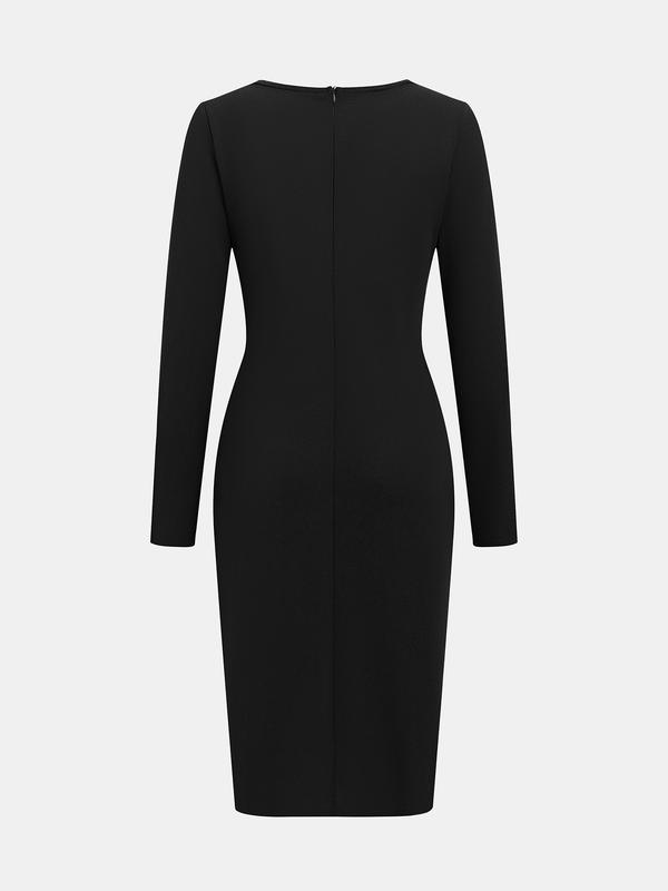 Women's Solid Color PU Leather Patchwork Zipper Bodycon Dress, Elegant Slim Fit Long Sleeve Party Dress #dress #partydress #spotlightfinds #fyp #fashion