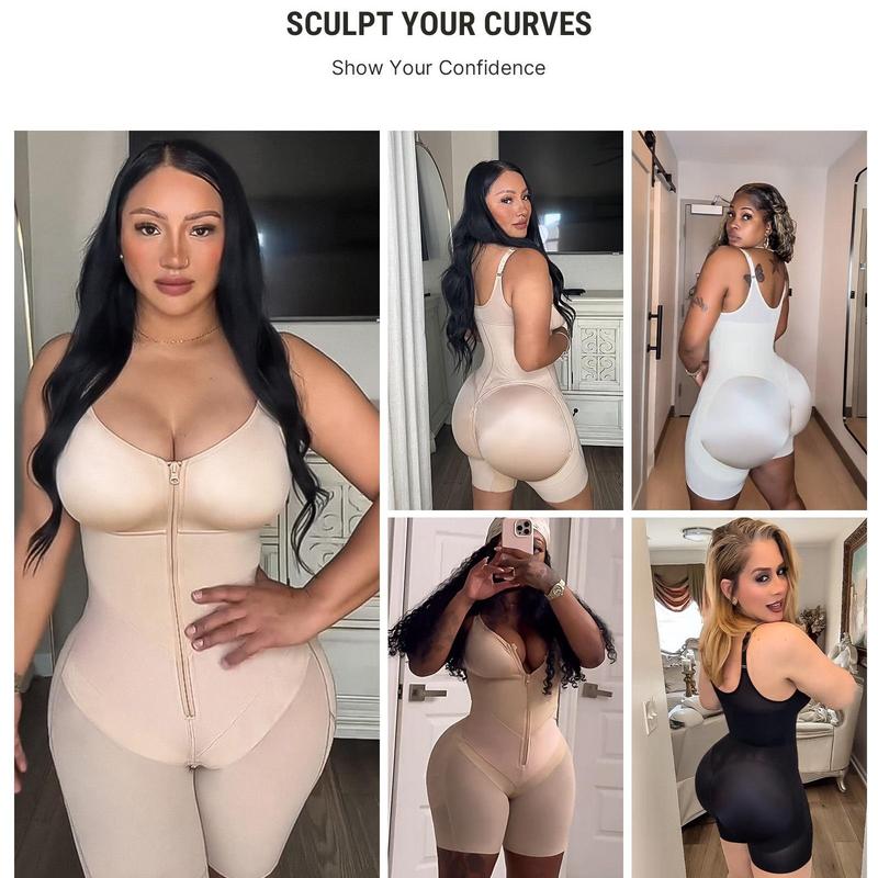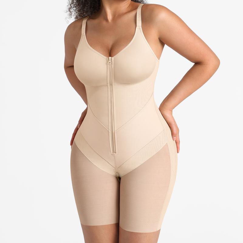 • Front Zip Closure Design: Features a smooth central zipper (from bust to crotch) for easy on/off, while the contoured bust cup provides gentle lift and shaping.