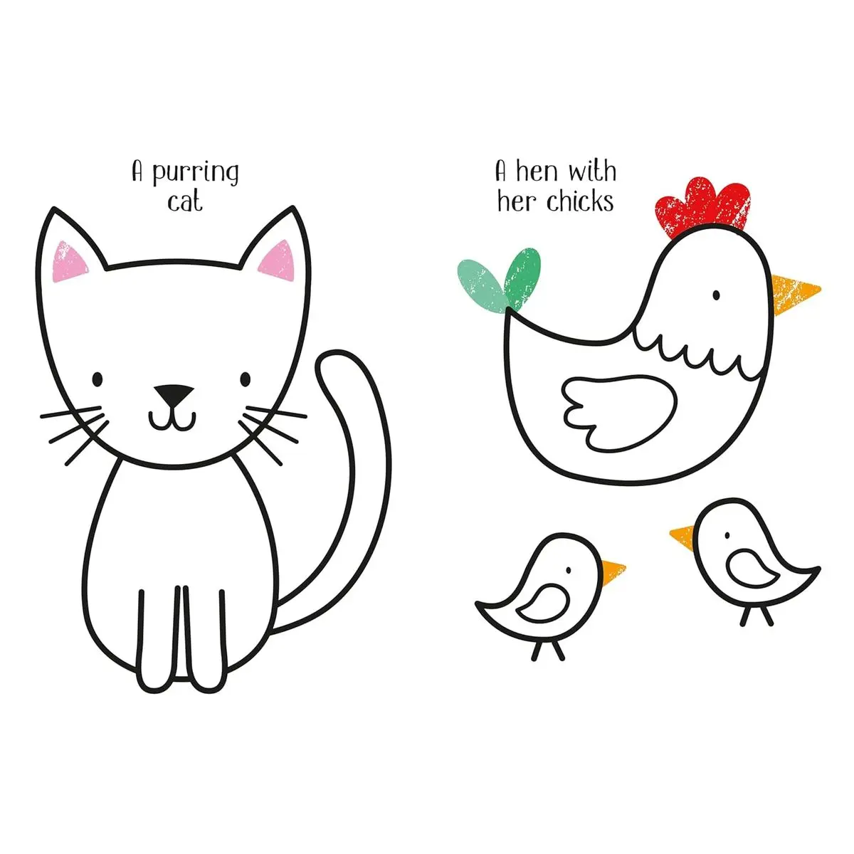 A perfect first coloring book full of favorite animals.
