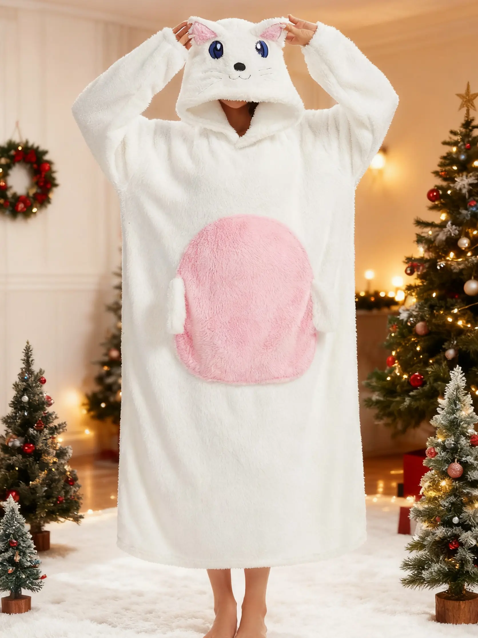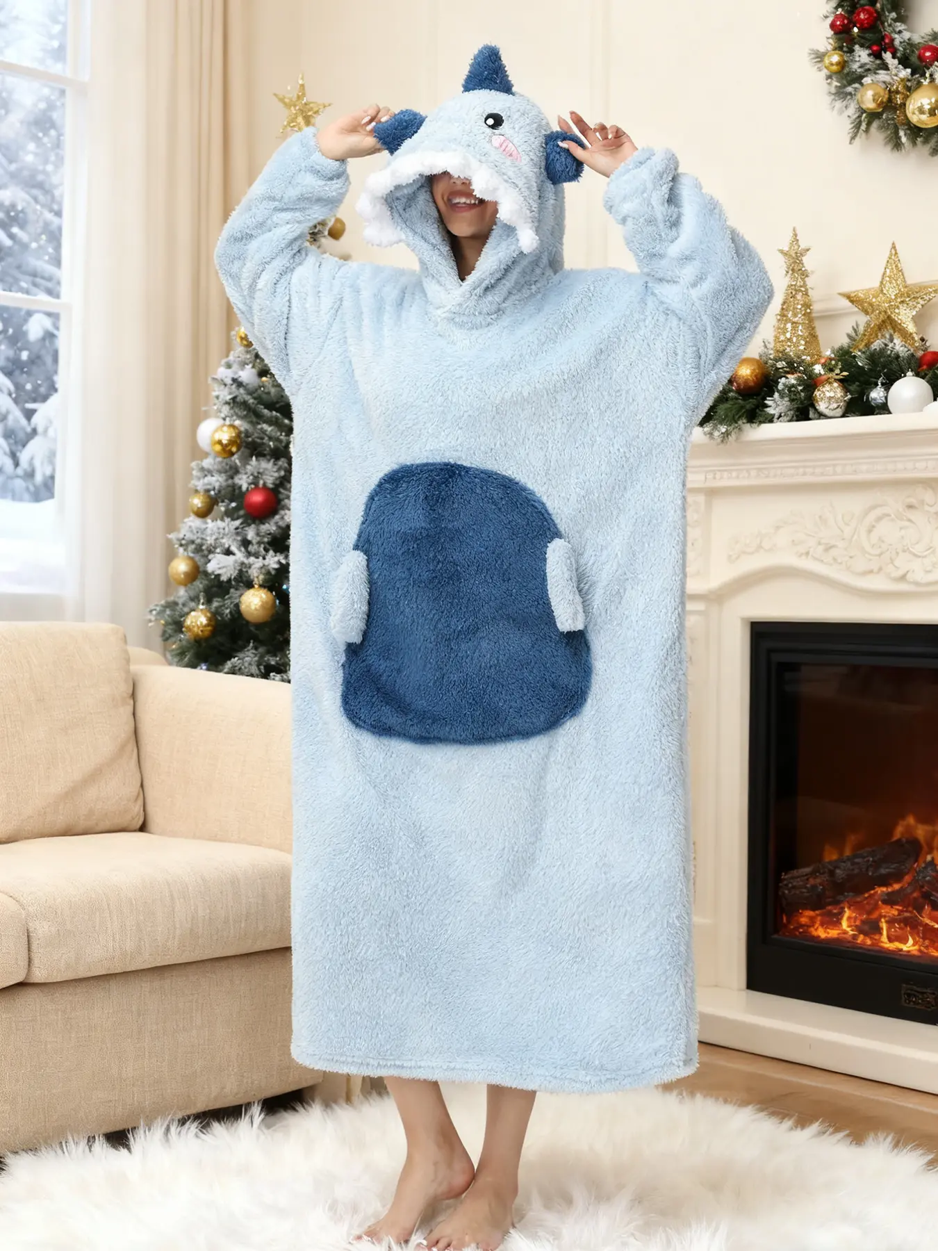 Warm Animal Style Wearable Blanket Cozy Thermal Throw for Adults and Kids Perfect for Lounging and Relaxing Home Indoor Use Soft Fluffy Fleece Blanket Ideal for Cold Weather