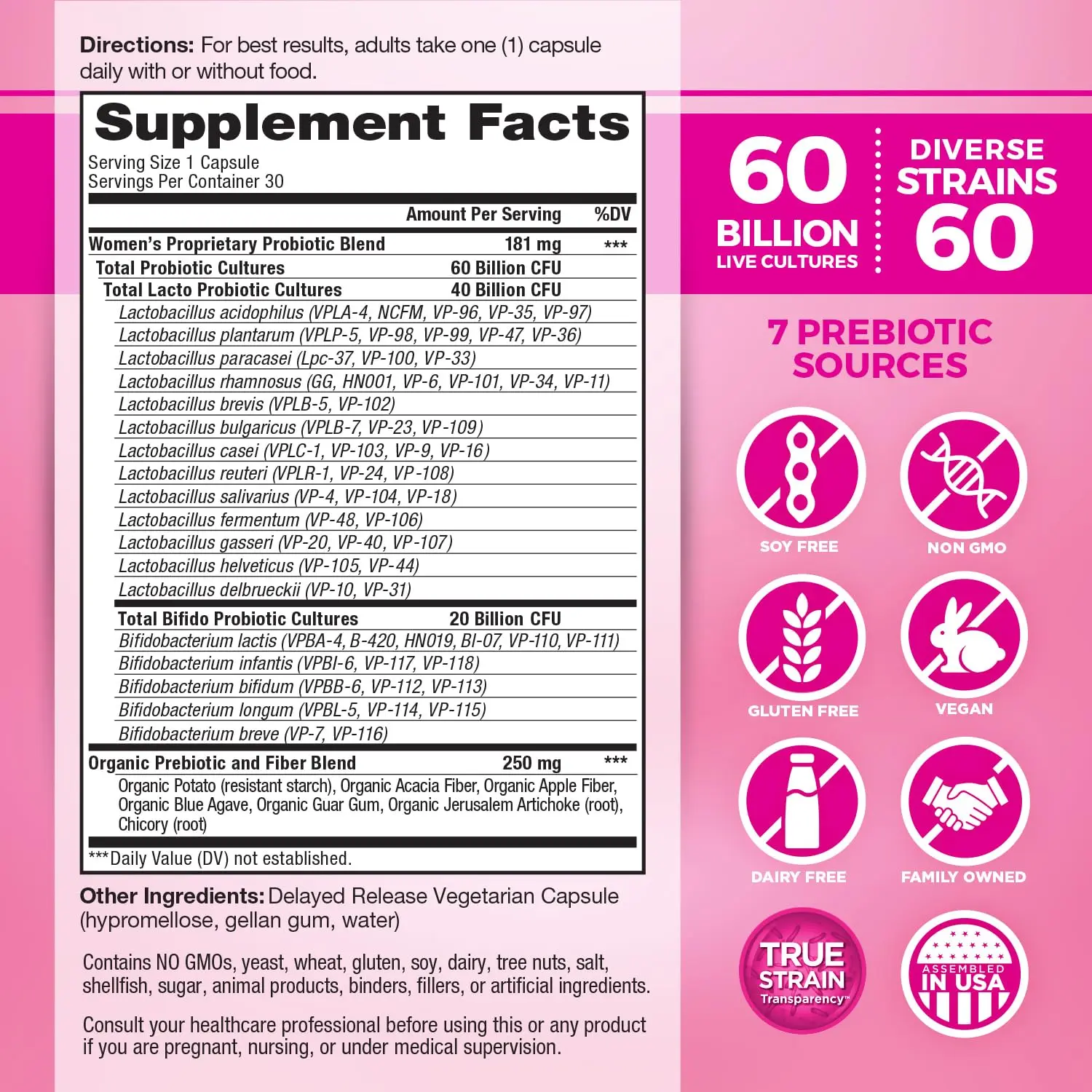 ·Expertly formulated with a highly-diverse blend of beneficial, clinically-studied Bifido & Lacto strains with more Lacto for a woman's special needs*