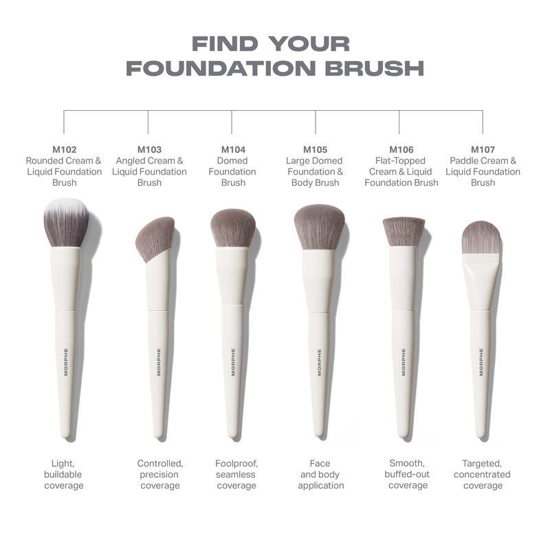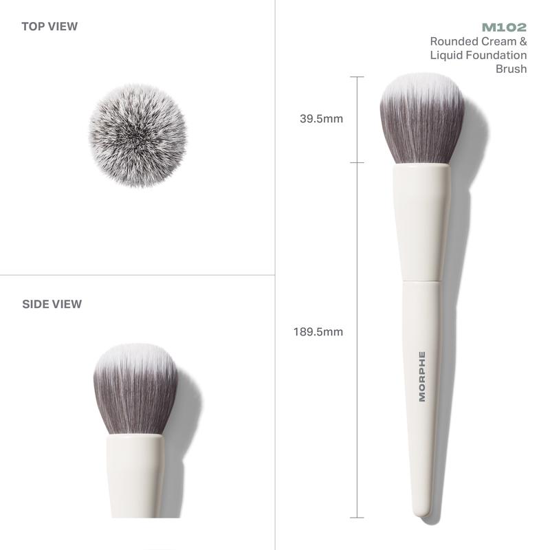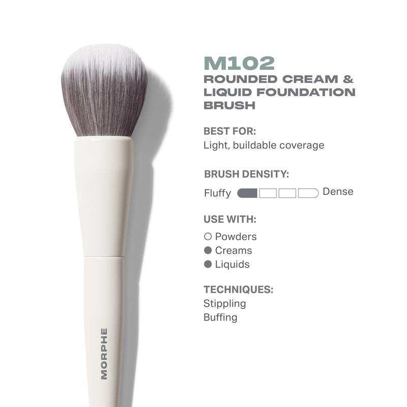 ·The M102 Rounded Cream & Liquid Foundation Brush is designed for lightweight, buildable coverage.