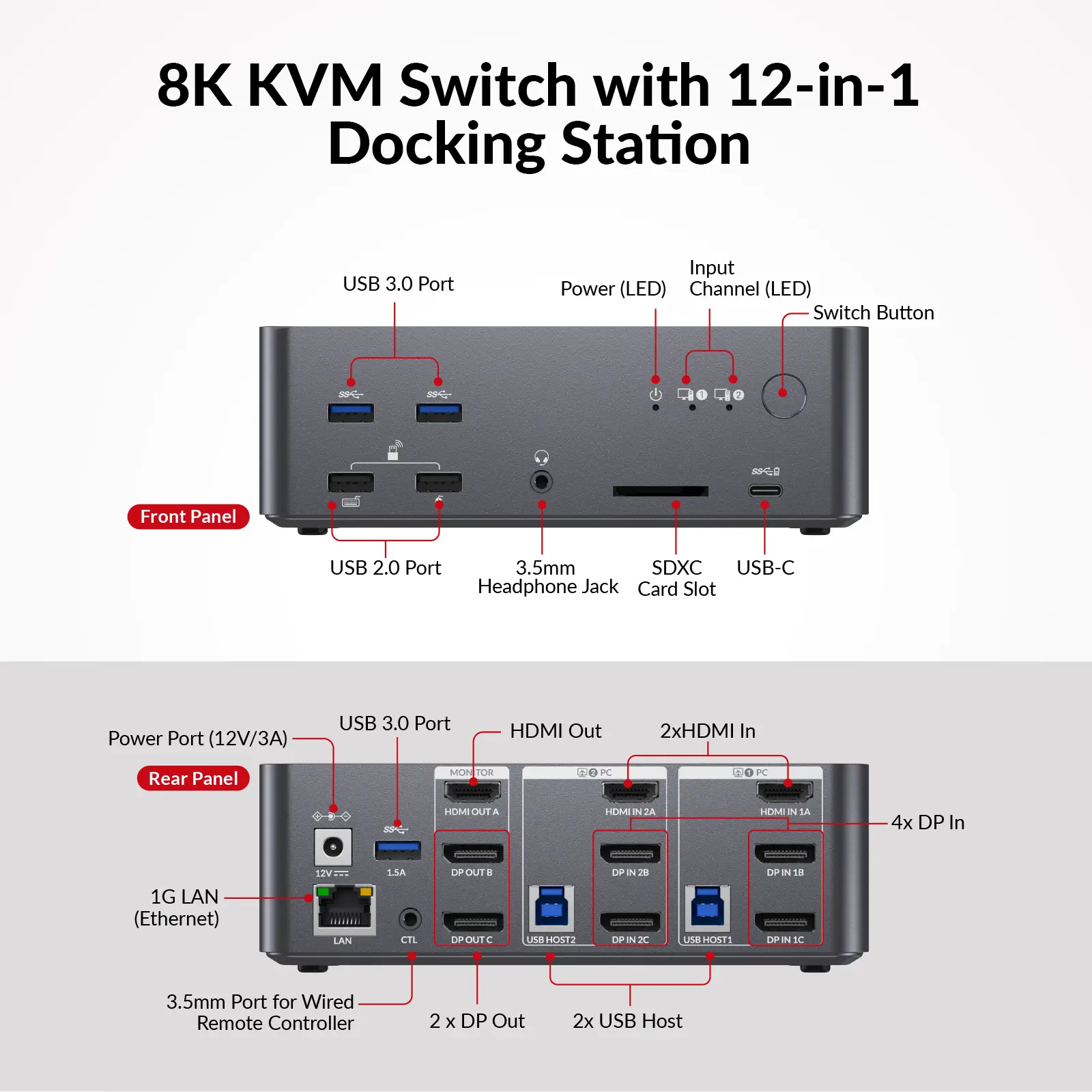 ·1x iDock D23i 8K DP/HDMI KVM Switch