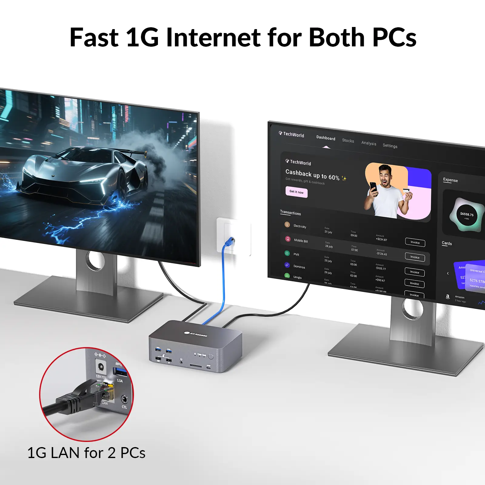 Share a stable 1G Ethernet connection between two PCs for seamless, uninterrupted internet access while switching.