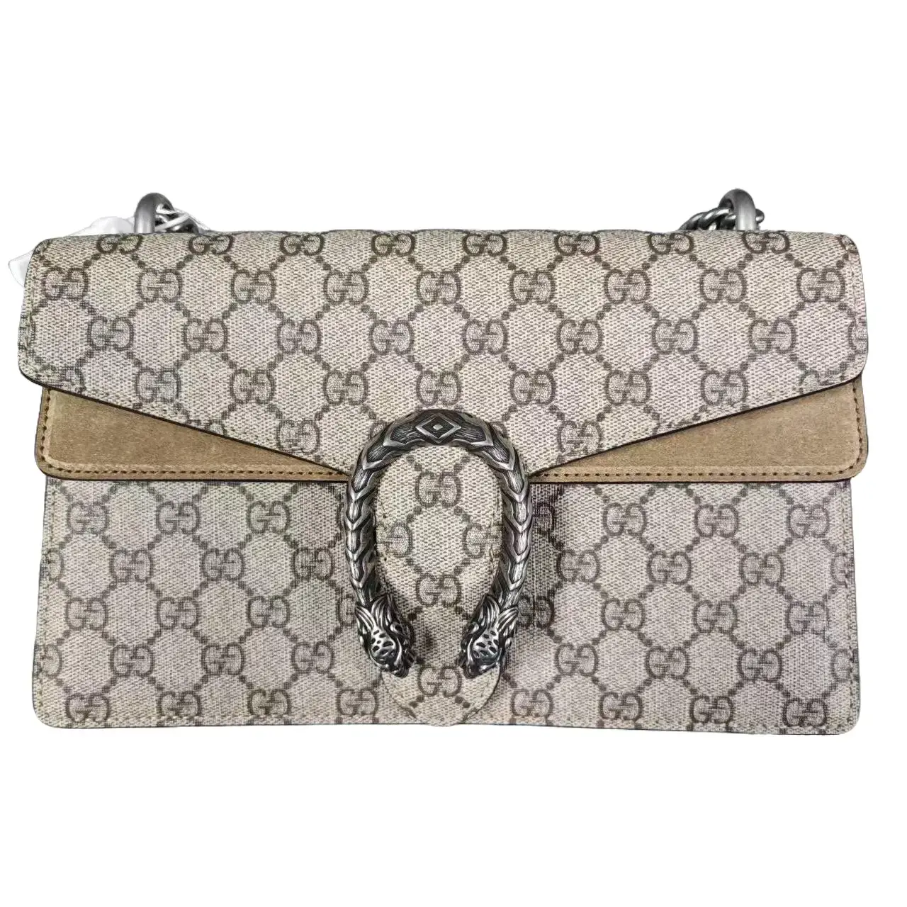 The Gucci Dionysus tiger head buckle bag showcases an old flower logo canvas and leather construction. This blend offers both style and durability. The tiger head buckle adds a distinctive touch, making it a standout accessory. Perfect for those who appreciate intricate designs. 🌟