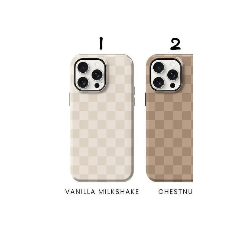 Neutral Brown and Cream Checkered Phone Case, Beige,phone Case Suitable for IPhone17 11 12 13 14 15 16 Pro Max Air Plus