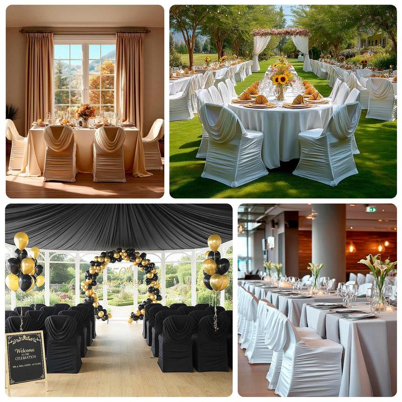5. Spandex Folding Chair Cover White with Ruched Swag Back and Foot Pockets – Fitted Stretch Slipcover