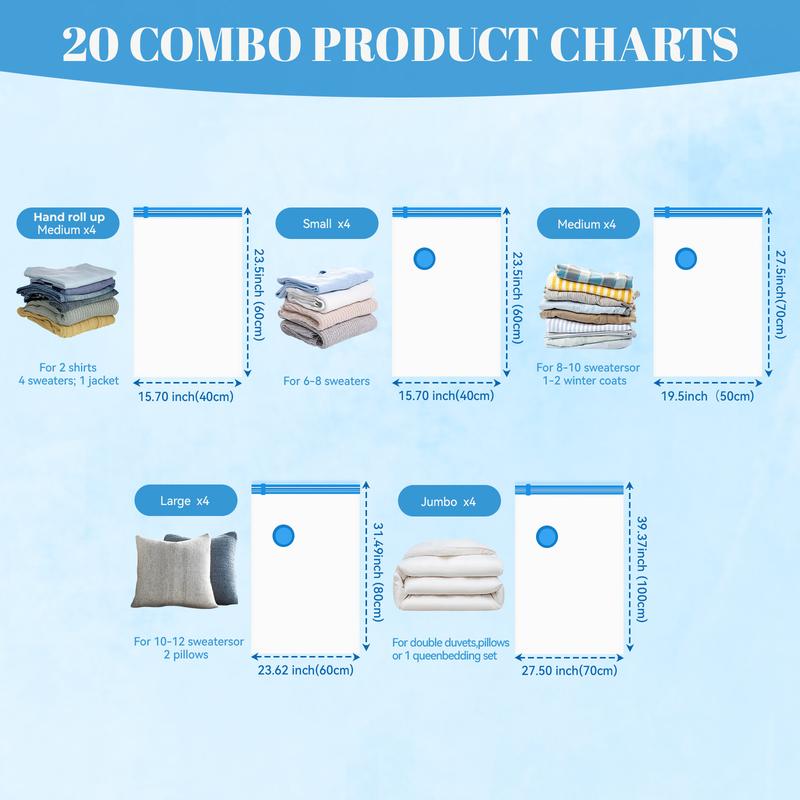 5. 20PCS Vacuum Storage Bags with Electric Pump,vacuum bags for travel,bolsas para ropa empacar,Space Saver Bags,house organizers,room organization products