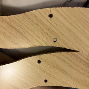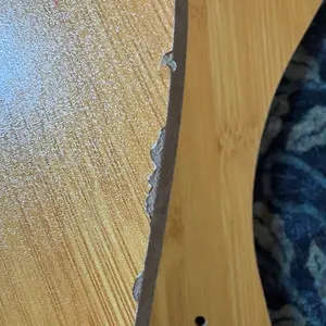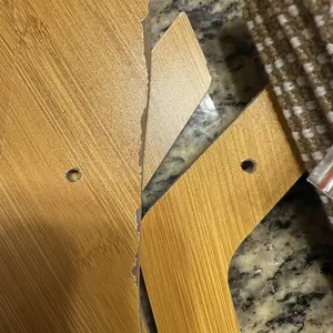 Photo shown is much better quality that item received. The product photo shows wood pieces...see the images...its not compressed cardboard like item I received. Ad better/sturdier in pic. Item is compressed cardboard. Chipped "wood" laminate. Not as sturdy. No directions but still easy to assemble.