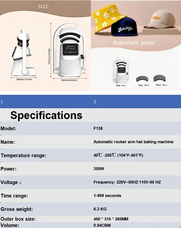 Hat Heat Press for DTF Printing Heat Press Machine Hot Press (See specs in photos)