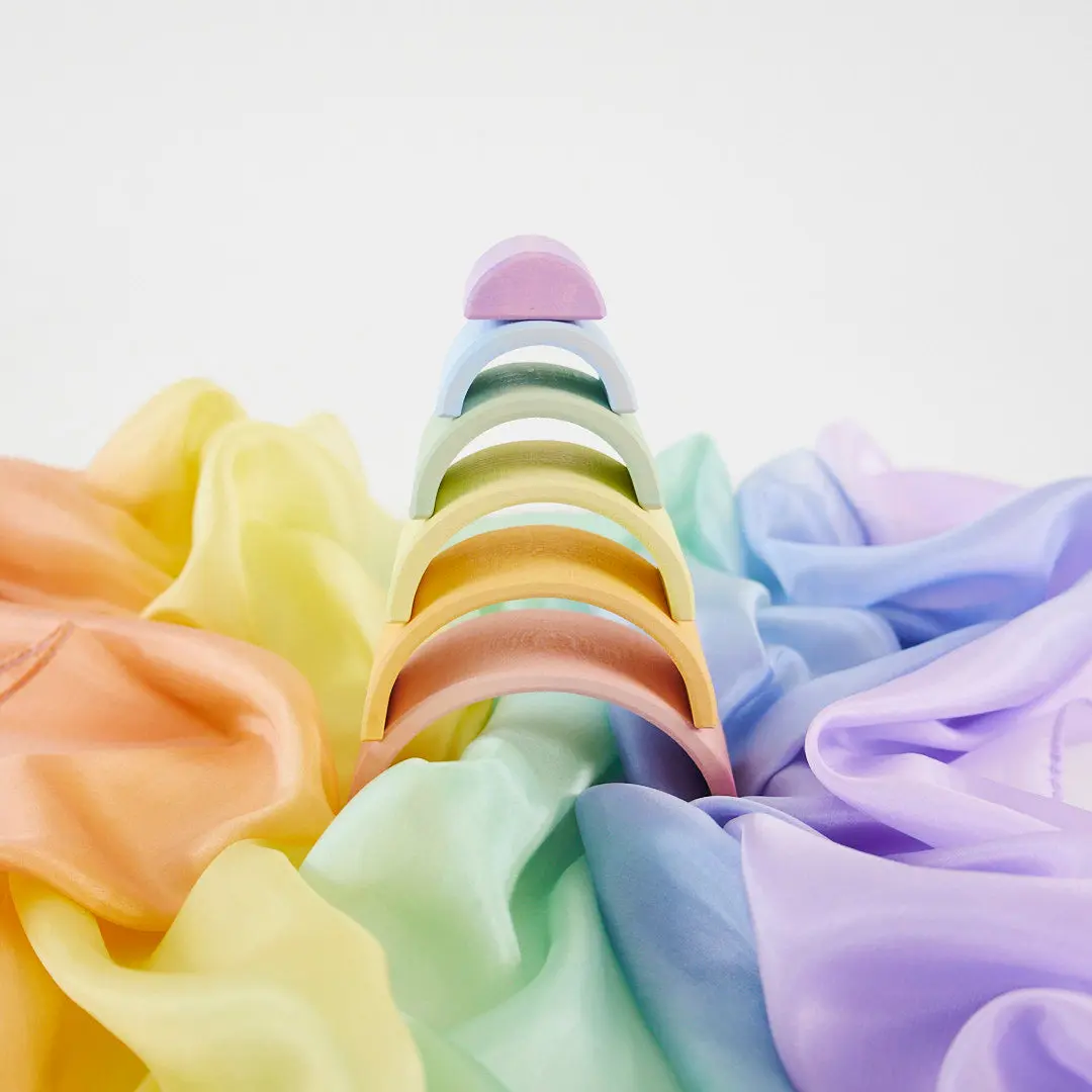 The 6-piece Pastel Wooden Rainbow is the newest addition to our collection of open-ended Wooden Toys!
