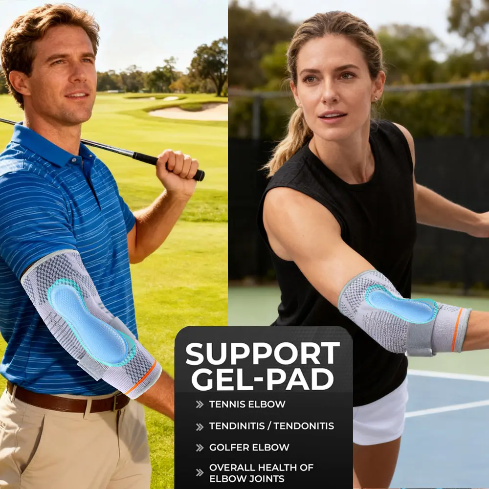 Elbow Brace Support, Breathable Elbow Compression Sleeve with Gel Pad for Golfer's, Tennis Elbow & Tendonitis Treatment & Pain Relief, Sports Arm Sleeves