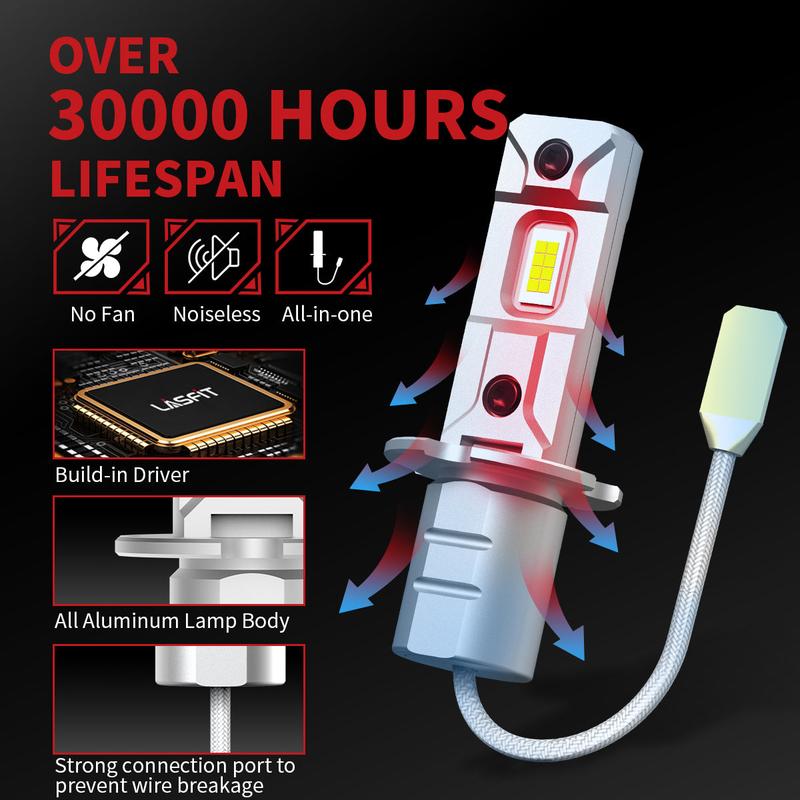Noiseless: Lasfit L1plus series led bulbs, without fans at the bottom, provide you a quiet driving environment and do not affect the heat dissipation of the lights.