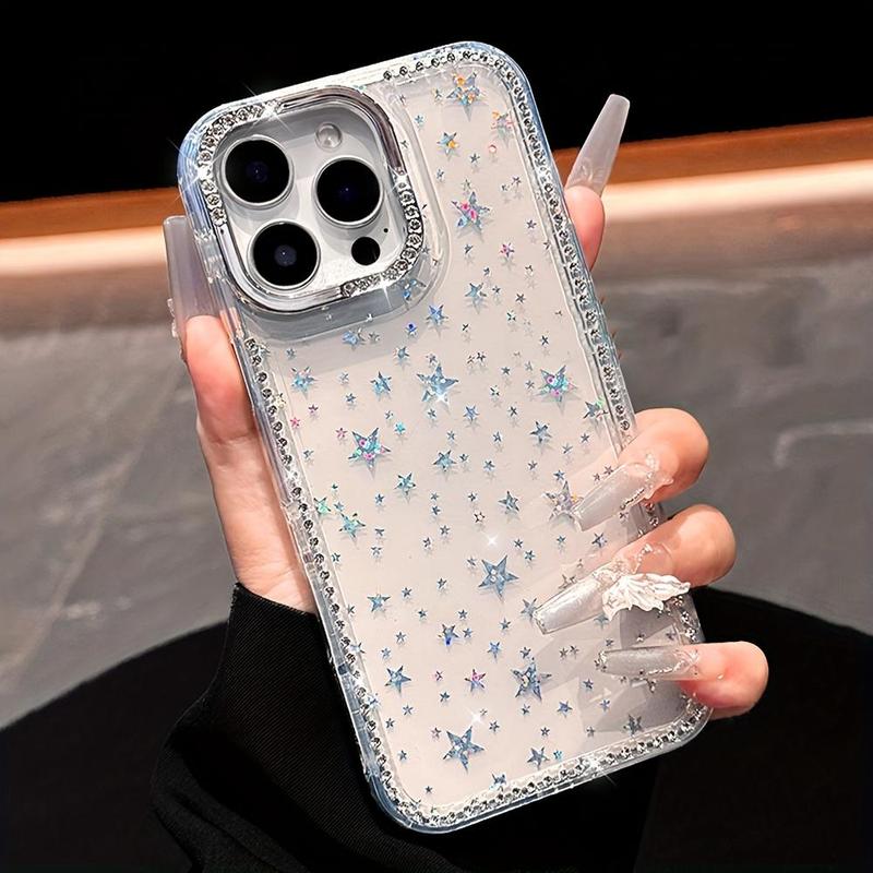 Chic Y2K-Inspired Phone Case Adorned with Luxurious Glitter Rhinestones And Star Sequins, Crafted for Iphone17, 16, 15, 14, And 13 ,12Pro Max, Showcasing a Dazzling Laser Protection.