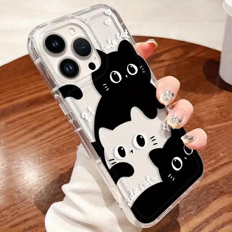 This transparent air cushion phone case features three adorable cats. Perfect for iPhone 11/12/13/14/15/16/17 Pro Max/XS/X/Plus Series. The case is a delightful Christmas gift for loved ones. It combines functionality with charm, ensuring your phone stays protected while adding a playful touch.