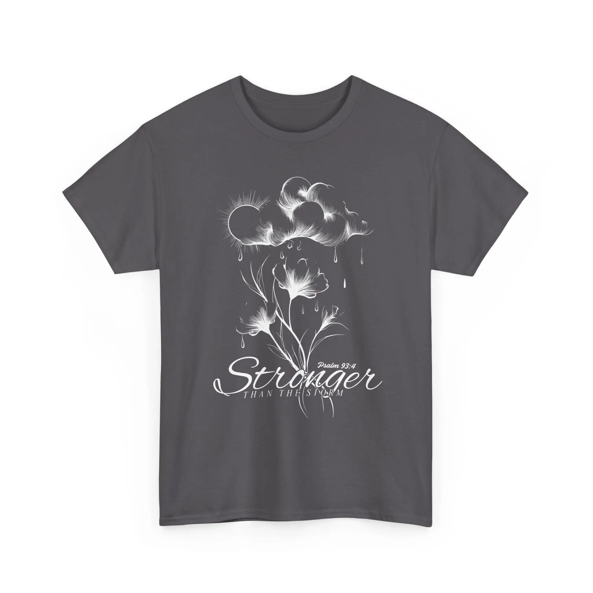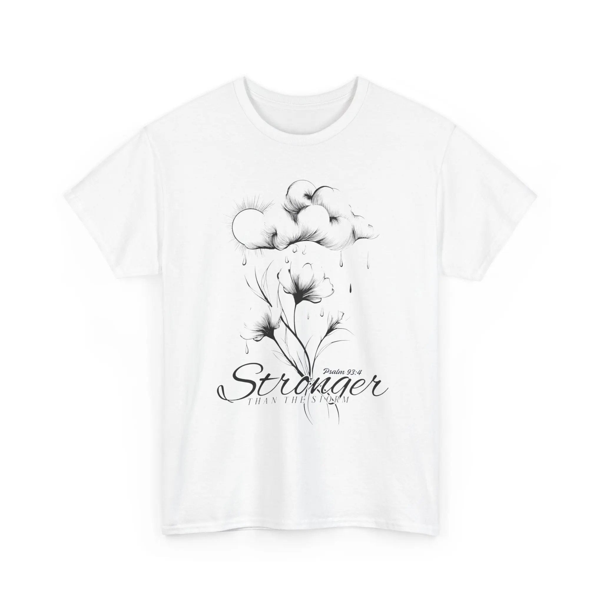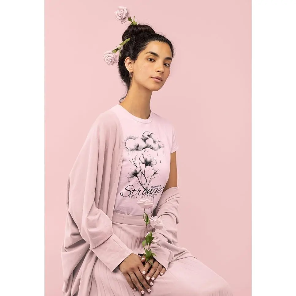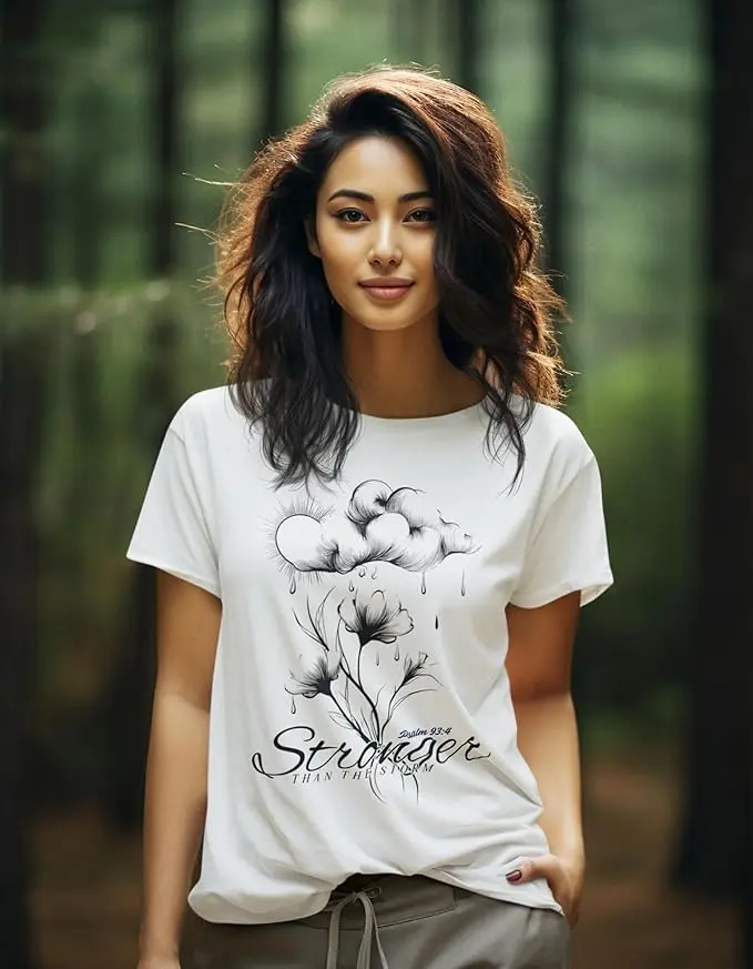 This Stronger Than The Storm Christian T-Shirt is perfect for women and teens looking for inspiration from the Bible. The Psalm 93:4 verse adds a powerful message that God is stronger than your difficulties. A very positive and uplifting scripture. This t-shirt is ideal for those who want to express their faith and strength, making it relevant for church events, Christian gatherings, and everyday wear.
