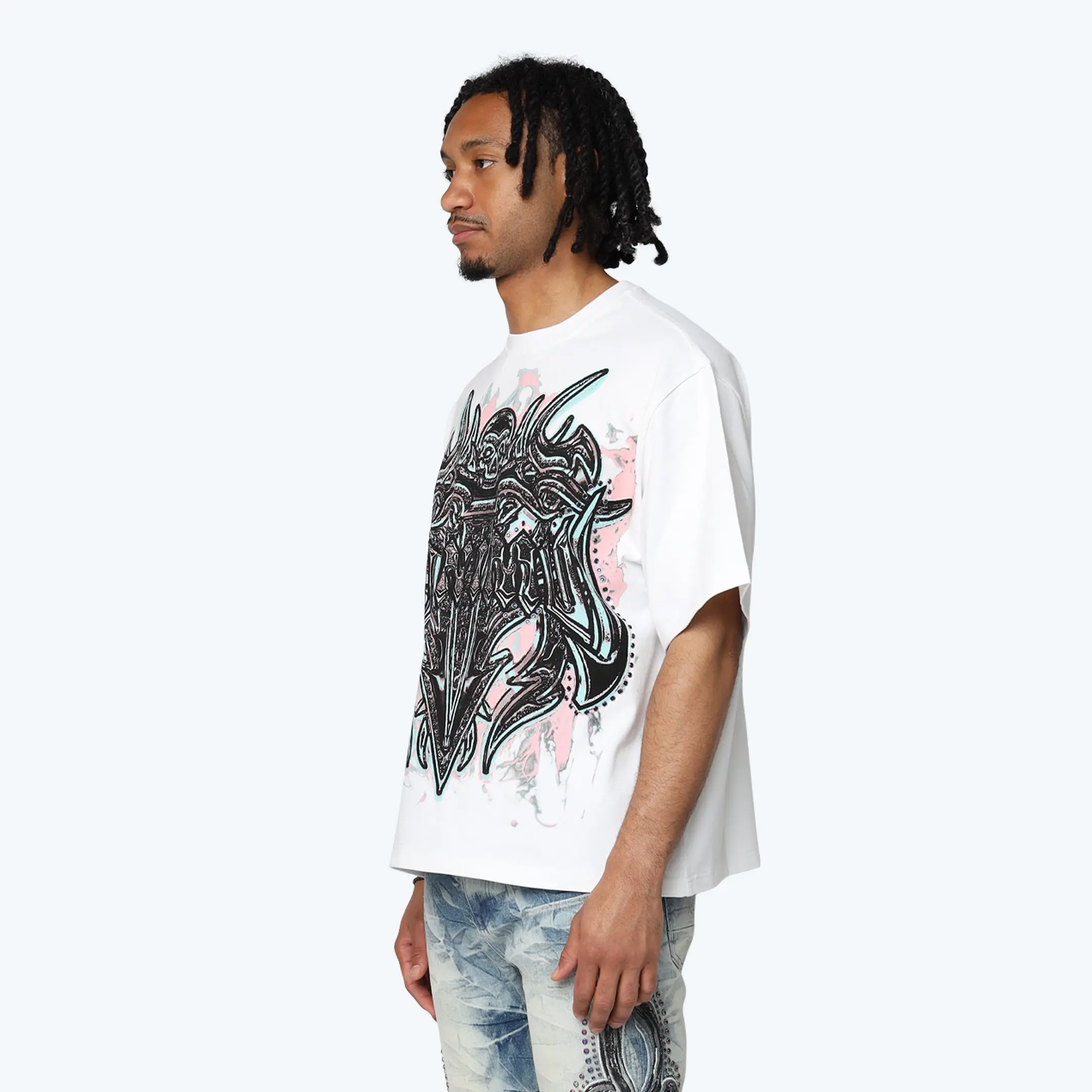 Wide Cropped Victory Flocking T-Shirt - Wood Ash
