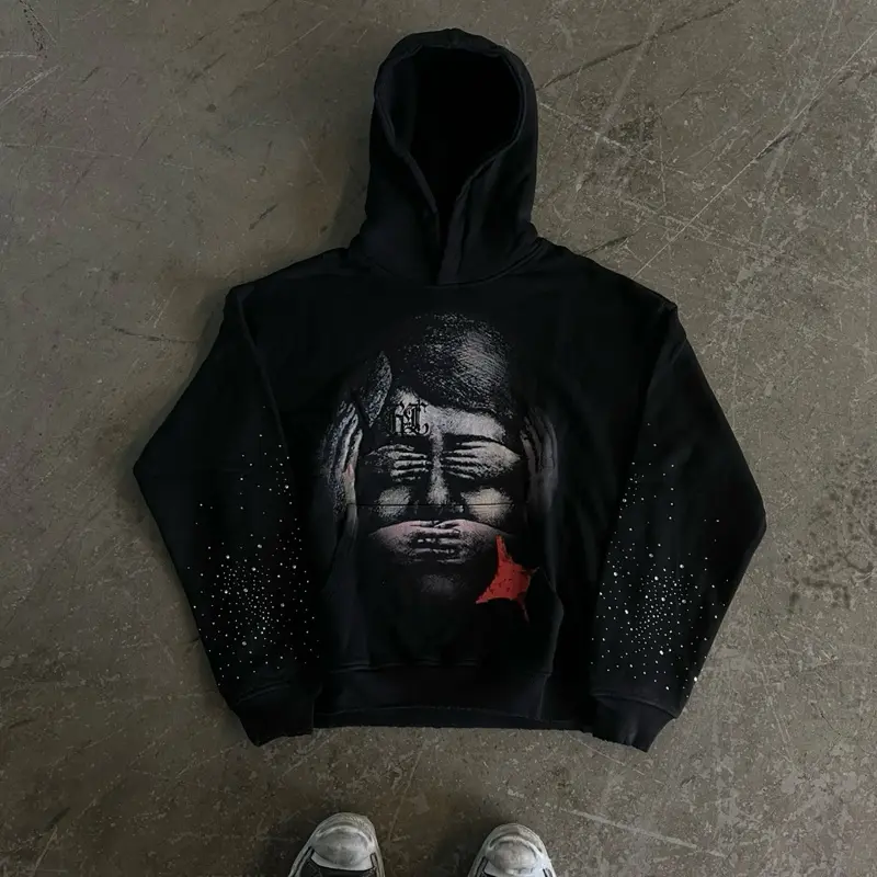 Nice fit, the rhinestones are actually studded into the jacket itself, they shine well, the print is on there well, overall a nice purchase. Product quality: Great.
