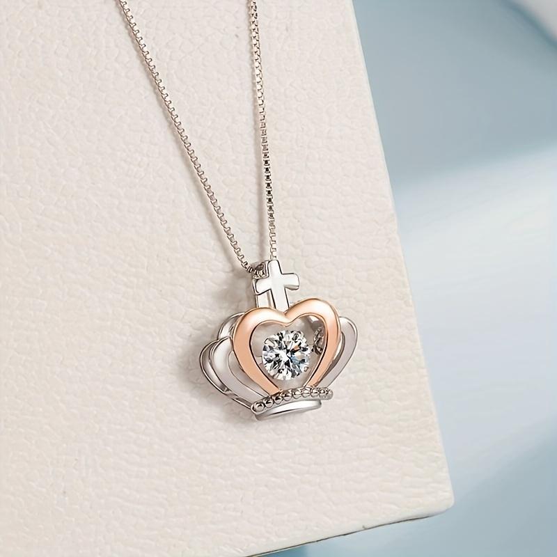 This "to My Granddaughter" Cubic Synthetic Zirconia Crown Pendant Necklace is a perfect gift. It features a white golden-plated (K14) heart-shaped princess-like stone. Ideal for birthdays, graduations, or Christmas, this necklace is designed for women. It serves as an elegant tiara accessory, adding a touch of sophistication to any outfit.