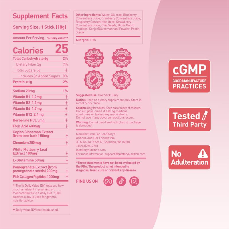 Elevate your health with the LeafStory Metabolism Reset Jelly! This pomegranate-flavored gel is designed to support metabolism, energy and skin & nails. It's gluten-free, non-GMO, and gelatin-free, all natural ingredients, making it a versatile choice. Each pack includes 2 sticks, perfect for daily use.