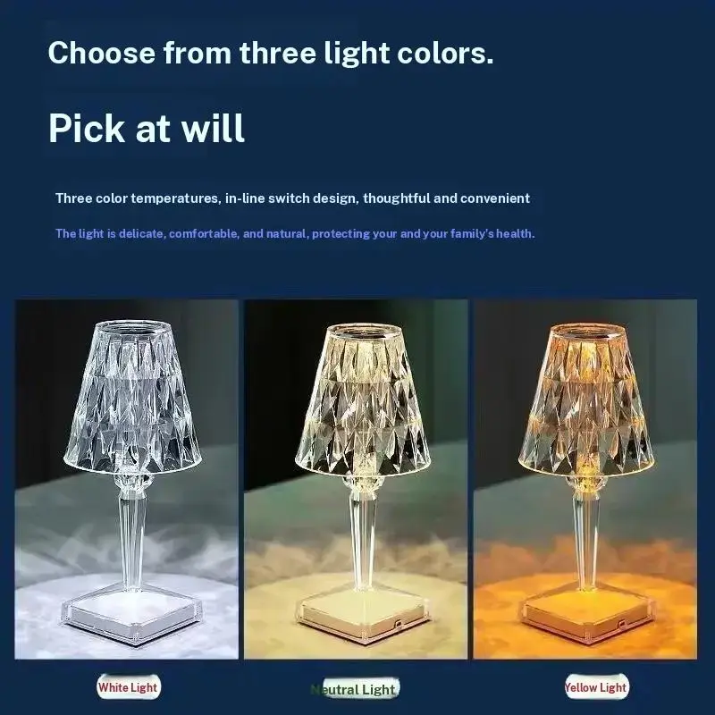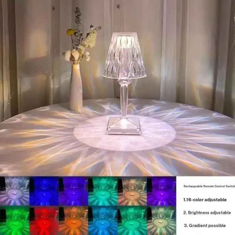 LED Atmosphere Lamp Color Rechargeable Touch Crystal Table Light Bedside Water Drop Night Light Home Dormitory Eye Protection Remote Control