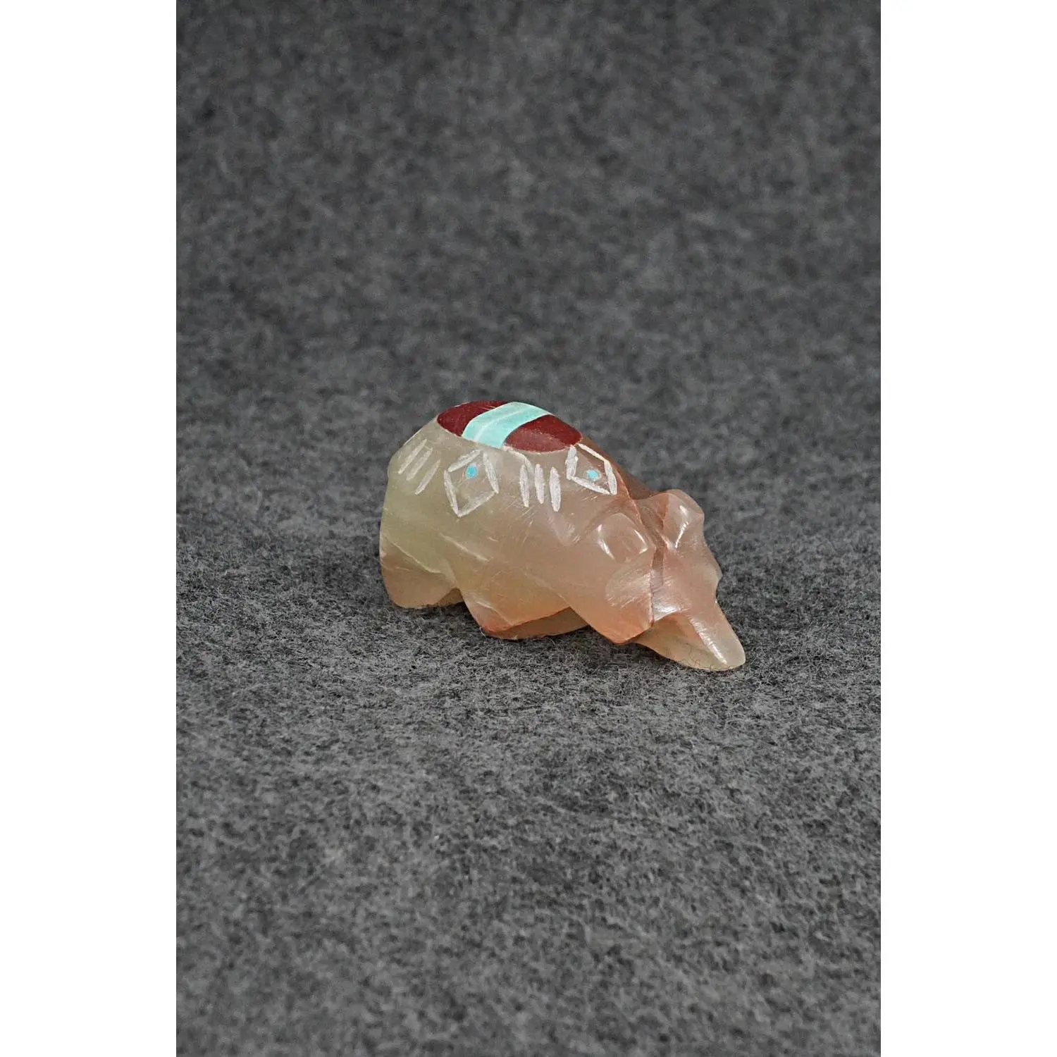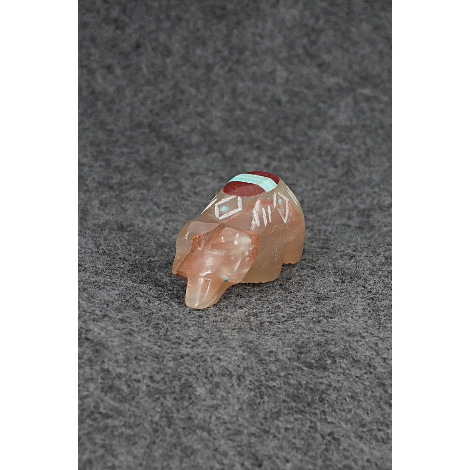 This bear Zuni fetish was carved by Brandon Phillip. The bottom is signed BP.