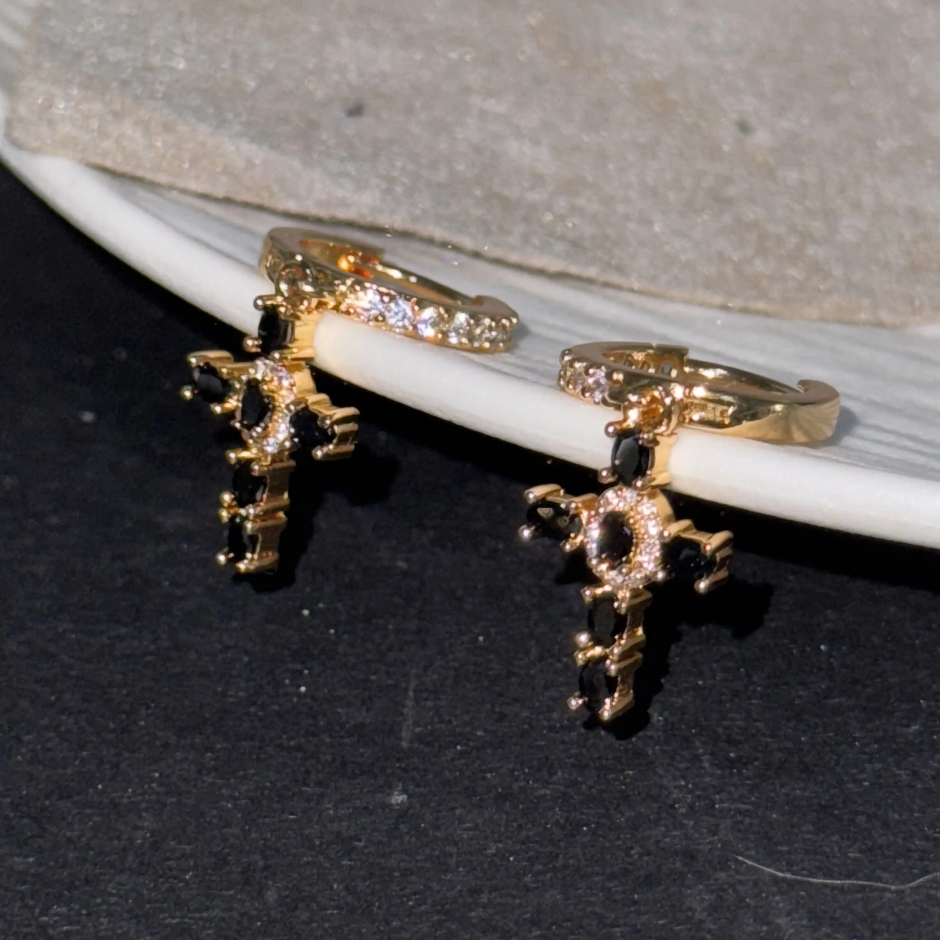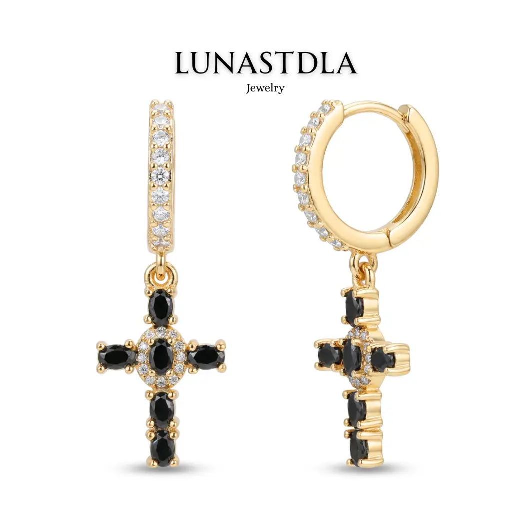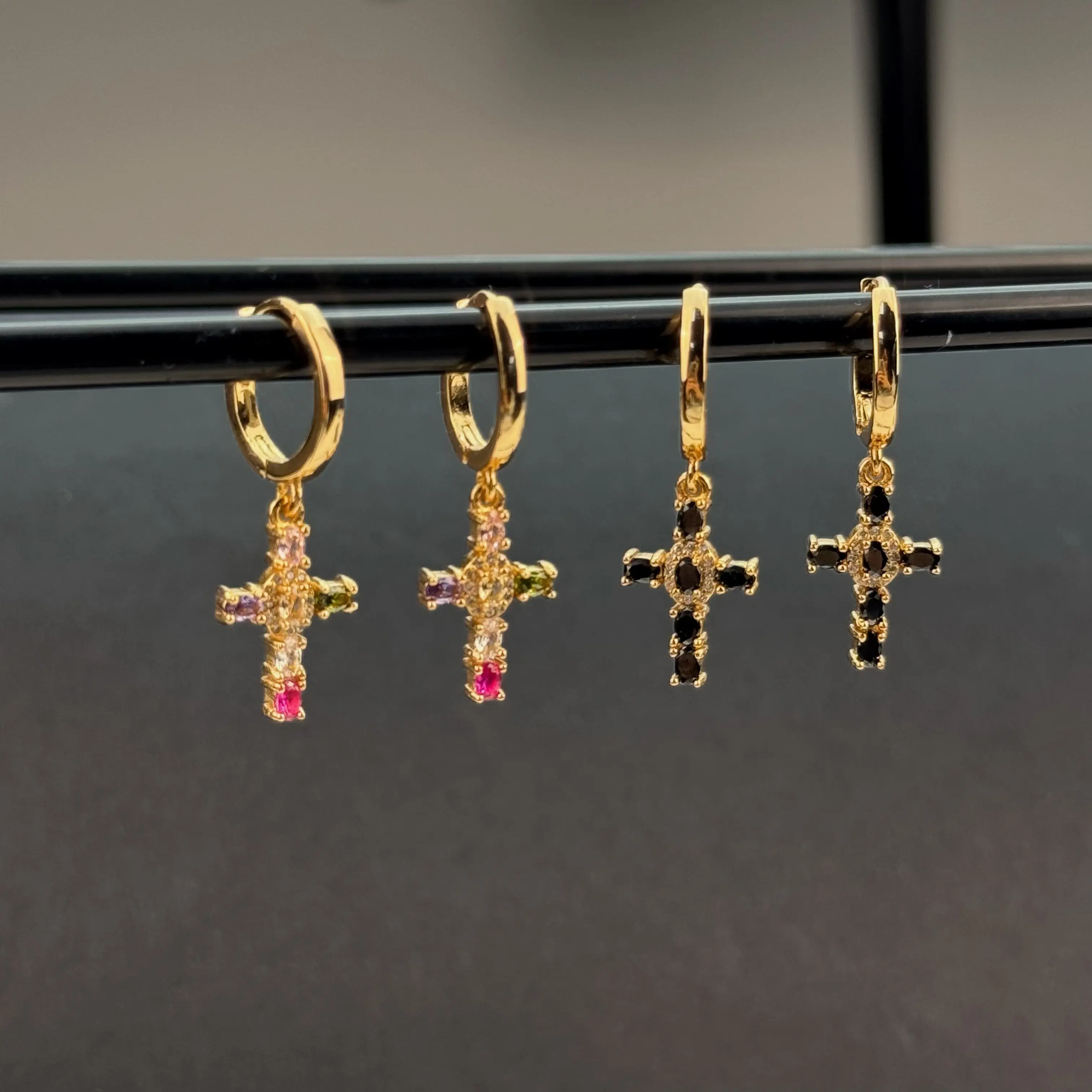 LunaStdla Rainbow Cross Hoop Earrings - Dainty Multicolour Zirconia Faith Cross Vintage Glam Y2K Vibes for Women Girls Suitable for Daily Outfits Church Festival Chrismas Gift for Girlfriend Mom