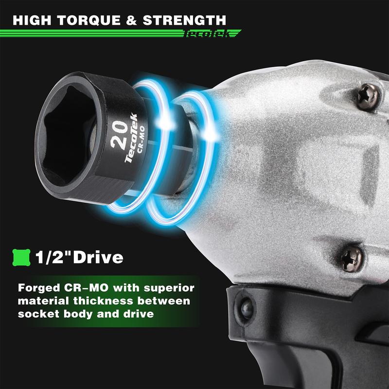 【Size Include】15-Piece 1/2-Inch Drive Metric Low Profile Nano Impact Socket Set: 10mm, 11mm, 12mm, 13mm, 14mm, 15mm, 16mm, 17mm, 18mm, 19mm, 20mm, 21mm, 22mm, 23mm, and 24mm. Wrench attachment with hex shank to reach tight spaces.
