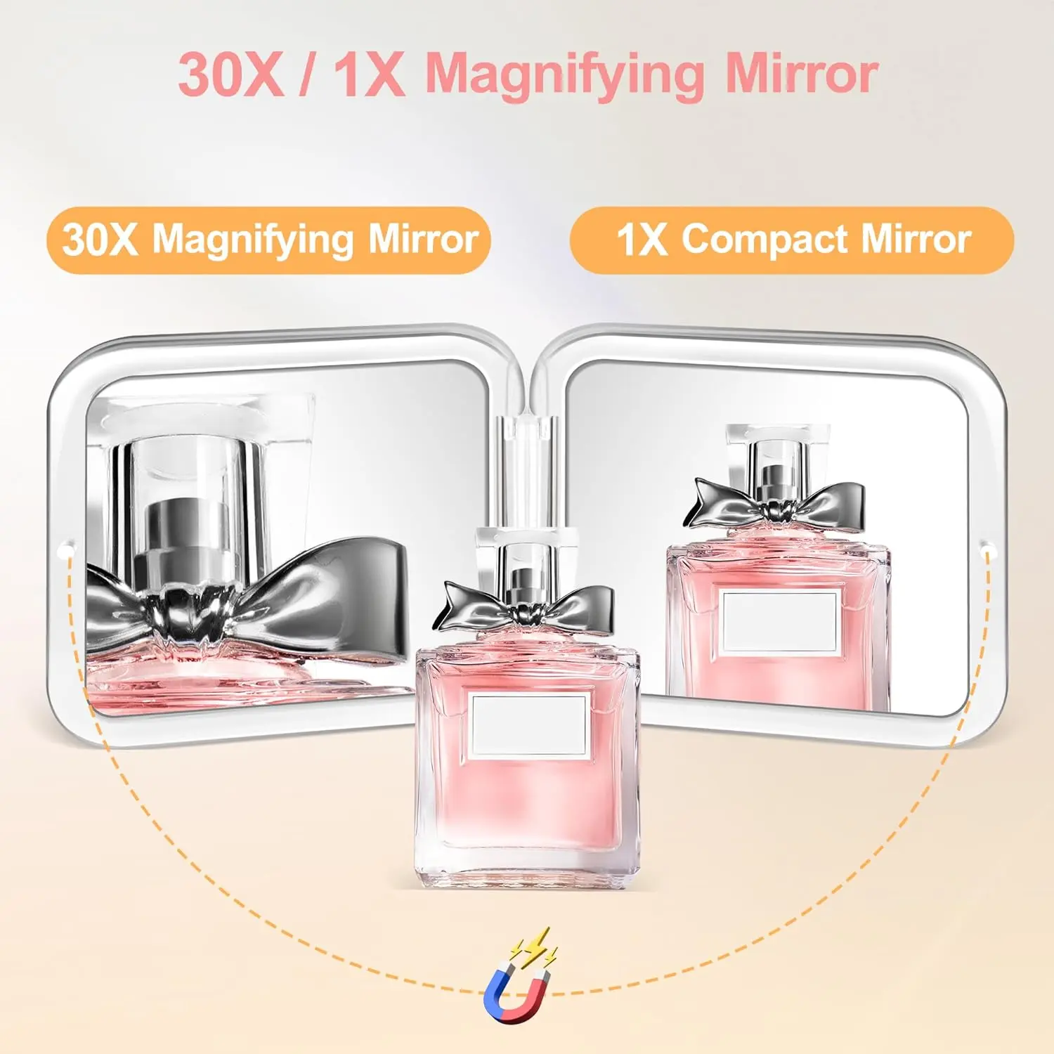 Feels slightly plastic-y and a little fragile, not anything that raises concern though. Mirror and light quality are very good! Light is bright, 3 settings. You can see every pore of your face with this mirror lol. Color: White. Product benefit: Perfect for an on-the-go mirror, checking your face, fixing your makeup, etc..
