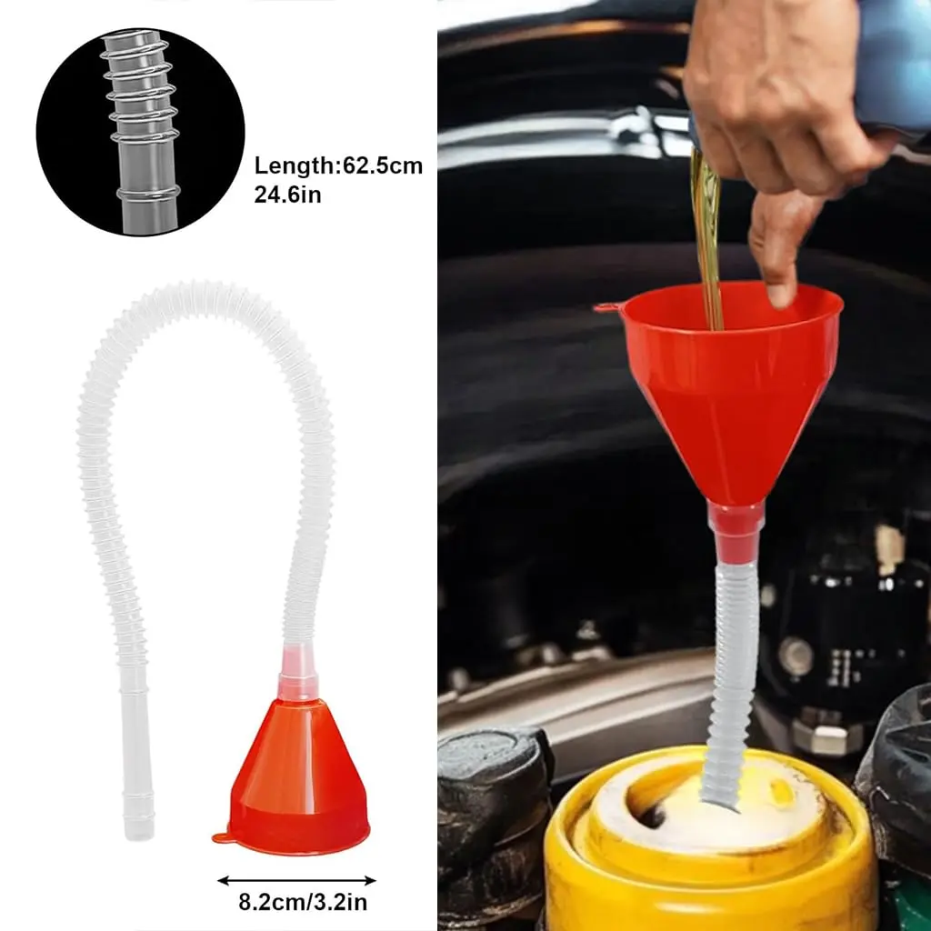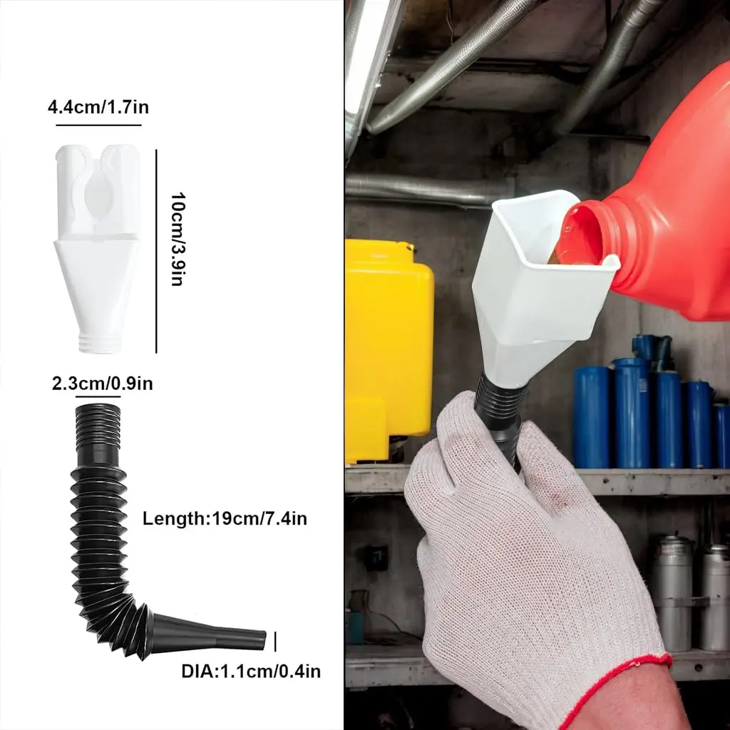 Package Includes: 2 Orange Single Side Sloping Funnel,1 black funnel with filter, 4 Red Funnel,2 Flexible Draining Tool Snap Funnel(Blue/White),1 Flexible Funnel with Long Hose (Red)