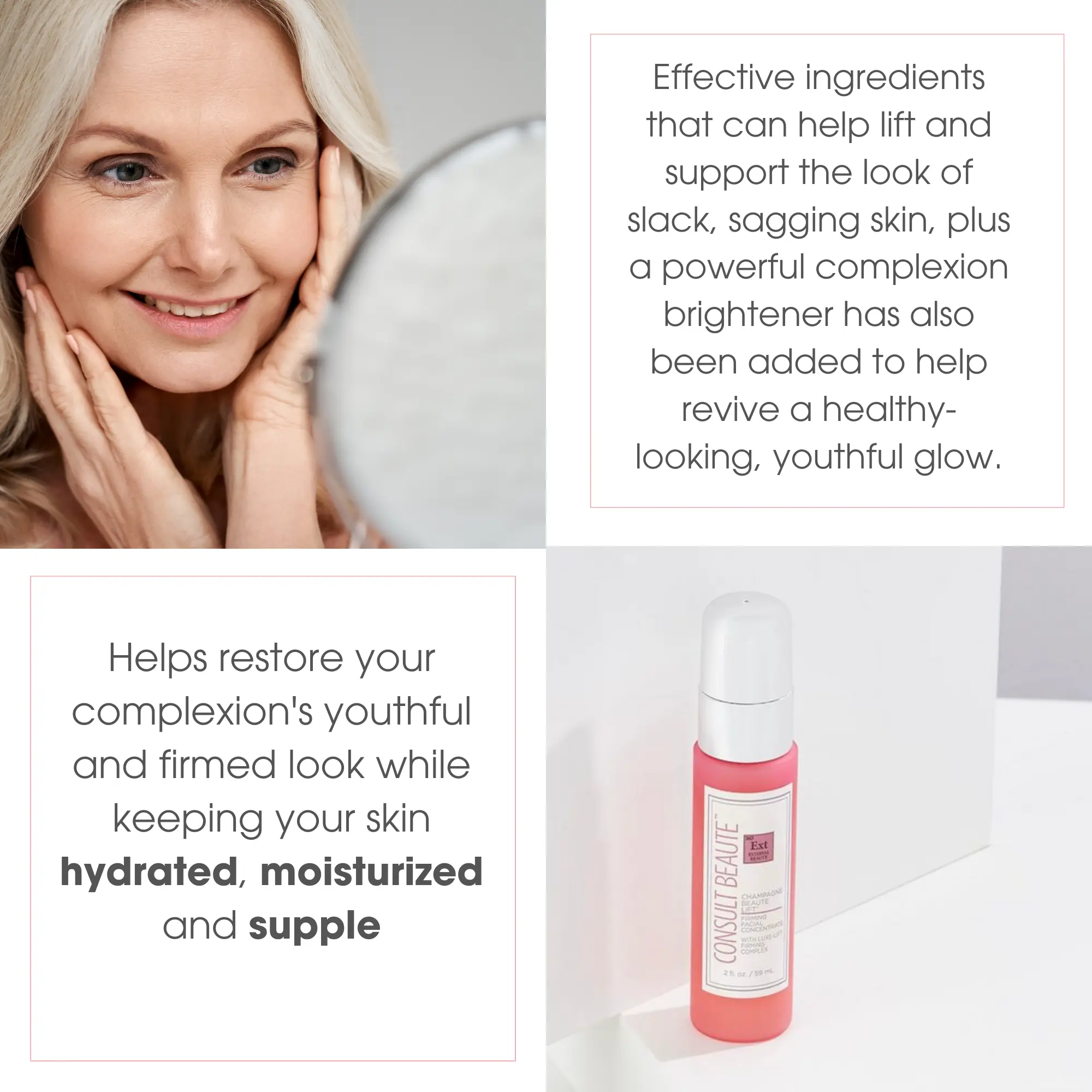 ·Supports the look of improved elasticity and skin density