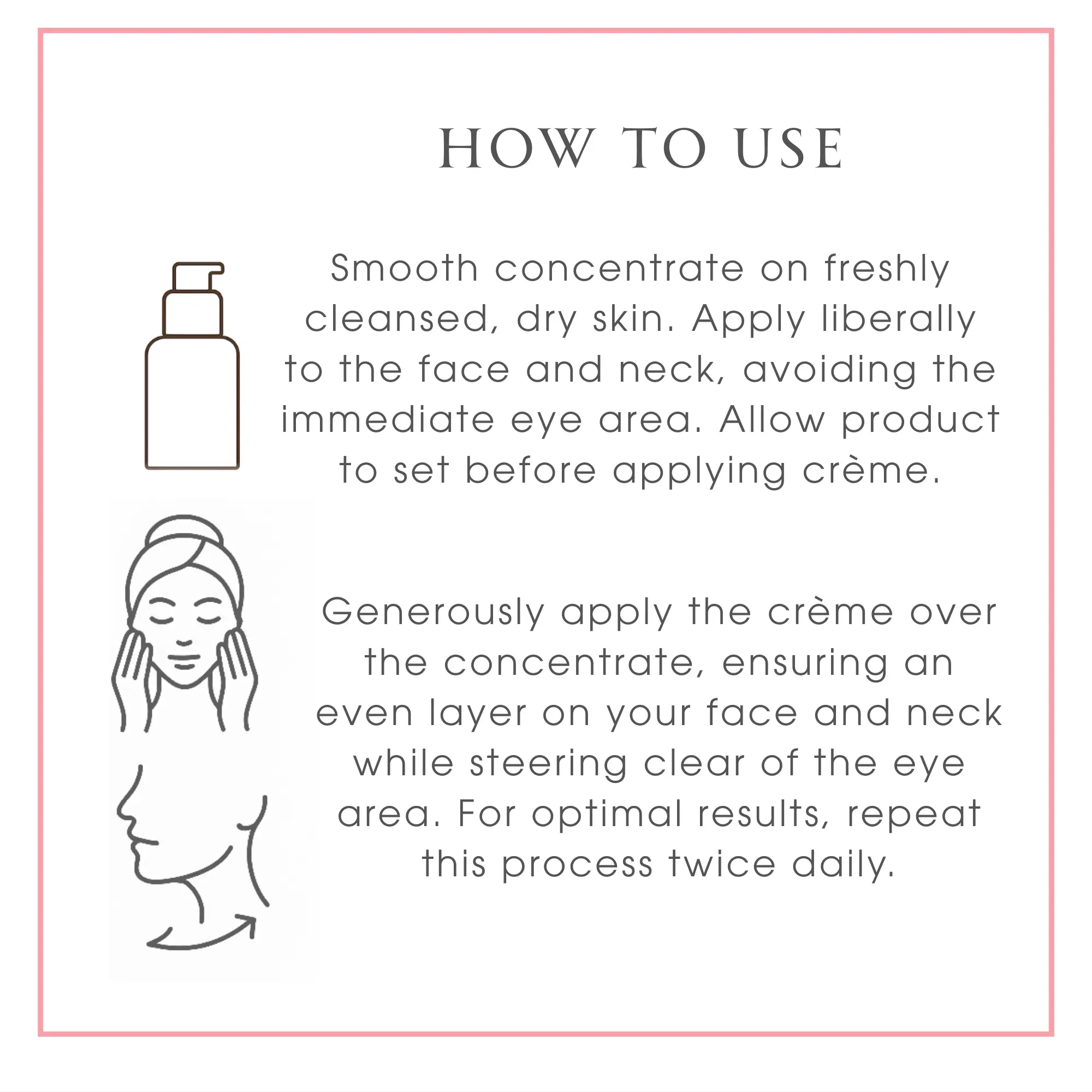 ·Apply the Firming Facial Concentrate to clean skin, focusing on areas of concern