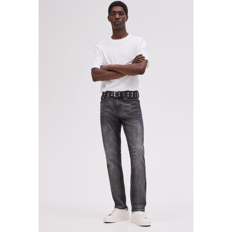 5-pocket jeans in cotton denim with a slight stretch for good comfort. Straight leg and a slim fit from the waist through the thigh to the hem. Regular waist and a zip fly. Easily styled for sleek or sporty.