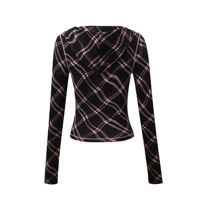 · Best selling Blare Hoodie in custom black and pink warped plaid all over print