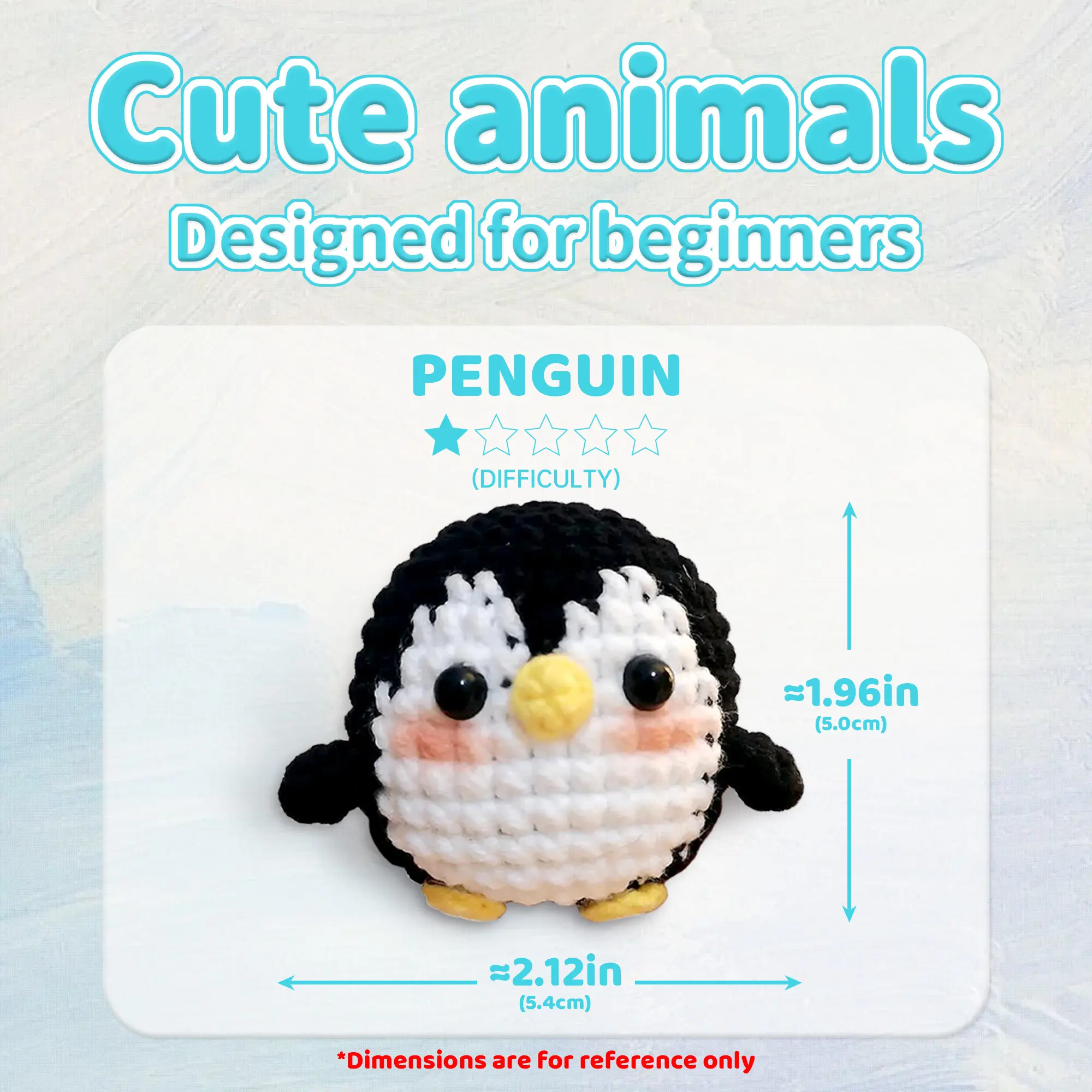 Penguin Crochet Material Package, Cute Stuffed Animal Kit, Include Videos Tutorials, Yarn, Seam Markers And Instructions, Handmade Crochet Penguin (Accessories In Random Color)