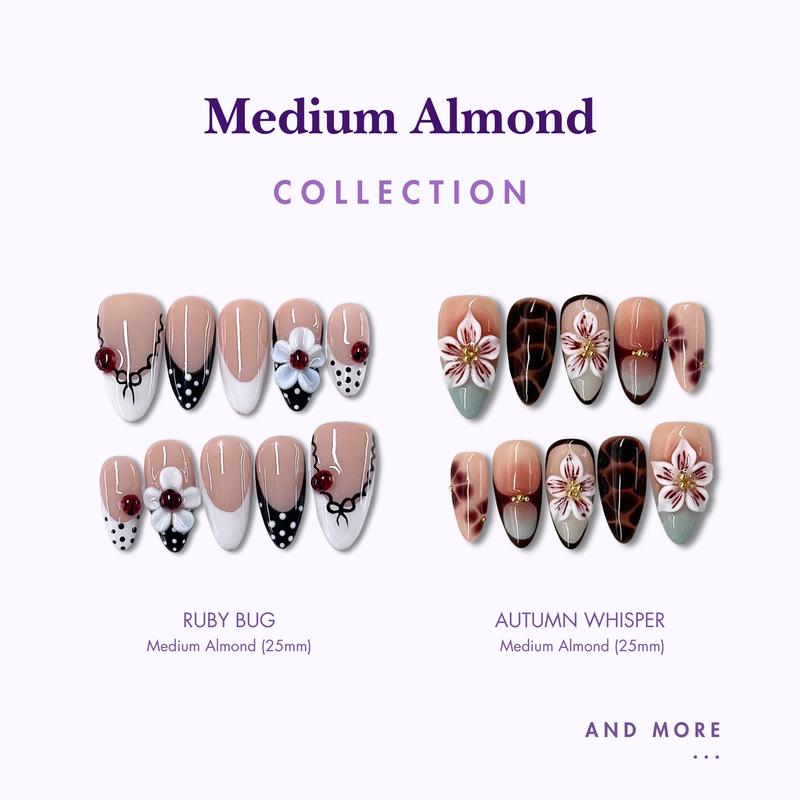 NailPhoria MEDIUM ALMONDS Collection - Handmade Press-On Nails | Reusable, Salon-Quality, Long-Lasting, Glossy Design