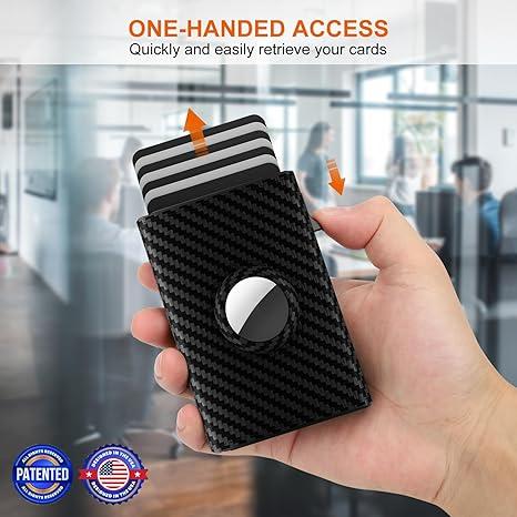Mens Smart Wallet Card Holder for AirTag: Leather, RFID Blocking, Slim, Carbon Fiber, Minimalist - 6-9 Card Capacity | ID Window | Cash Slot perfect birthday