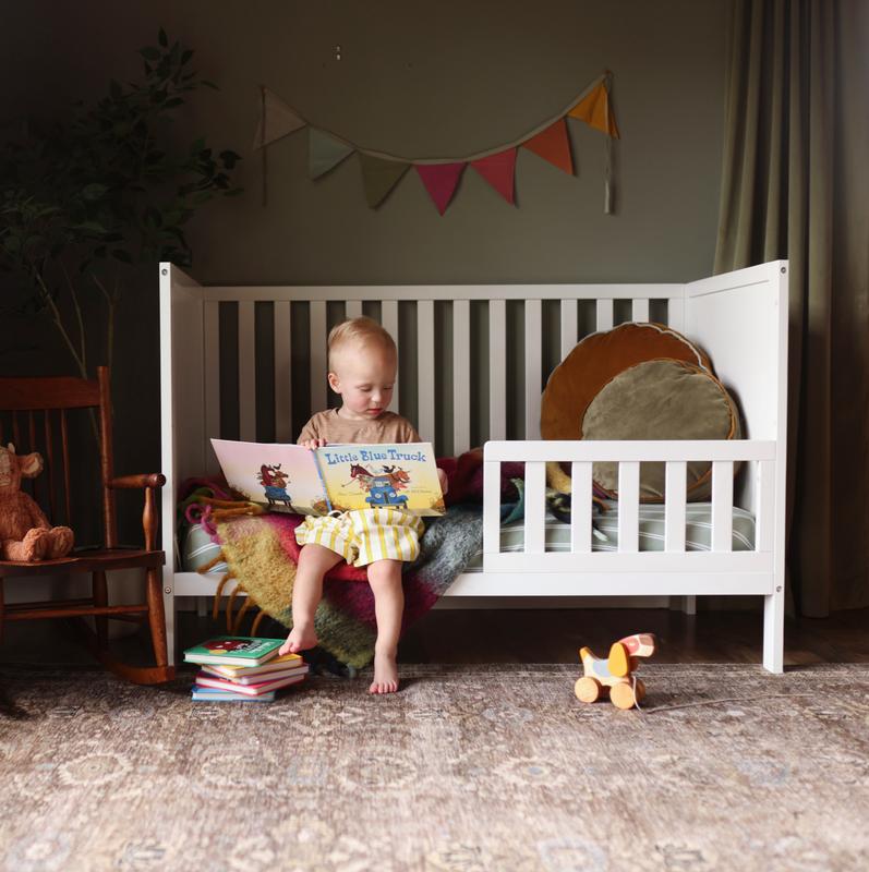 5-in-1 Convertible: Transforms from a crib for newborns to a toddler bed, daybed, sofa, and full-size bed.